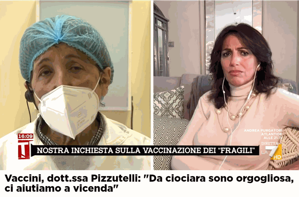 Oggi, intanto, alla Asl di Frosinone sono arrivate le telecamere del programma Tagadà di La7. Il giornalista Alessio Schiesari ha intervistato la dottoressa Caterina Pizzutelli che con orgoglio ha evidenziato: "Per noi è un dovere morale vaccinare: personalmente sto vaccinando anche i pazienti di una collega in gravidanza. Solo collaborando si potrà uscire da questa pandemia"