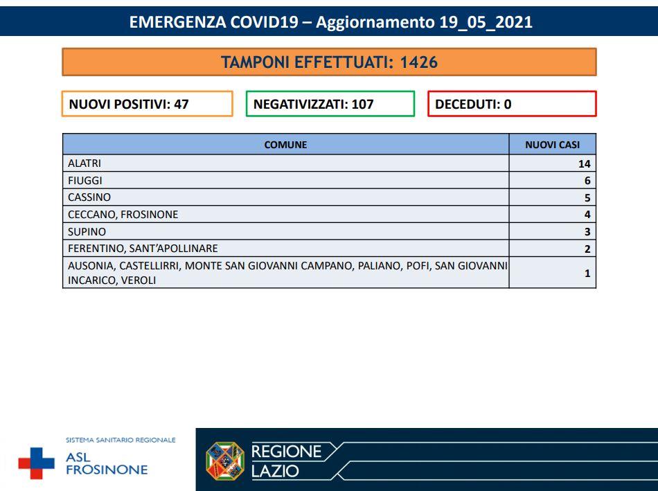 Nelle ultime 24 ore sono stati effettuati 1426 tamponi. I contagi restano ancora bassi: Sin Ciociaria sono stati registrati 47 nuovi casi di positivi al Sars-CoV-2. Sono 107 i negativizzati.