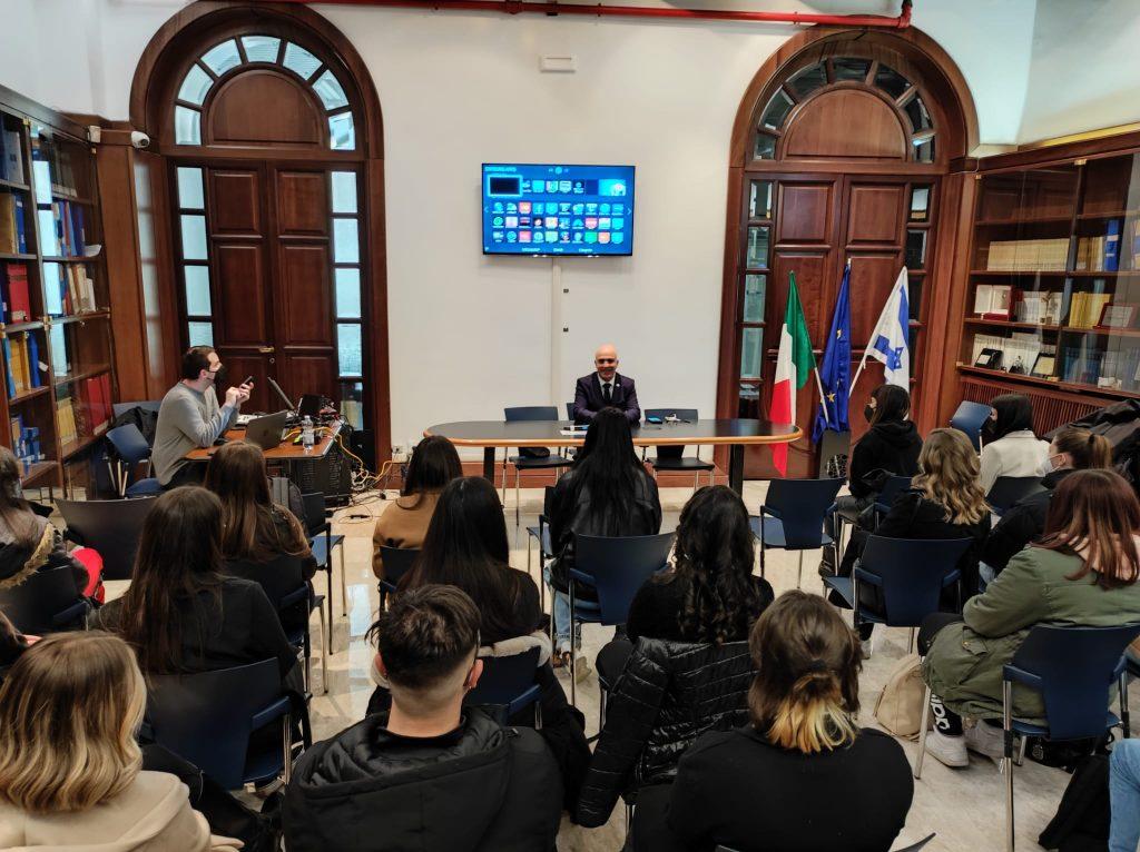 Gli studenti delle classi IVB del Liceo Linguistico, IVD e VC del Liceo delle Scienze Umane, sono stati ricevuti a Roma da S. E. l’Ambasciatore di Israele, Dror Eydar. Durante l’incontro, che si è tenuto presso il Centro Bibliografico “Tullia Zevi” - UCEI, l’Ambasciatore ha parlato agli alunni del Varrone della sua famiglia originaria della Persia, a testimonianza della diaspora ebraica e del desiderio mai sopito di ritornare nella “Terra dei Padri”; ha ripercorso gli anni bui della Seconda Guerra Mondiale che hanno visto l’uccisione di milioni di ebrei in Europa; ha presentato Israele, oggi Stato piccolo e moderno, ma alla pari di tanti grandi Stati; ha ricordato l’amicizia e la collaborazione in vari settori che legano il nostro Paese al suo.