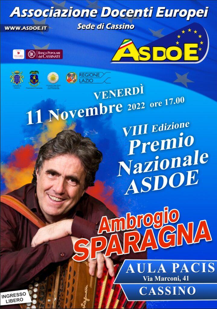 Dopo lo stop dovuto alla pandemia torna a Cassino il Premio Nazionale ASDOE. Il prossimo venerdì 11 novembre alle ore 17, presso l’Aula Pacis di Cassino, si svolgerà la cerimonia di consegna dell’VIII Premio Nazionale ASDOE al musicista Ambrogio Sparagna.