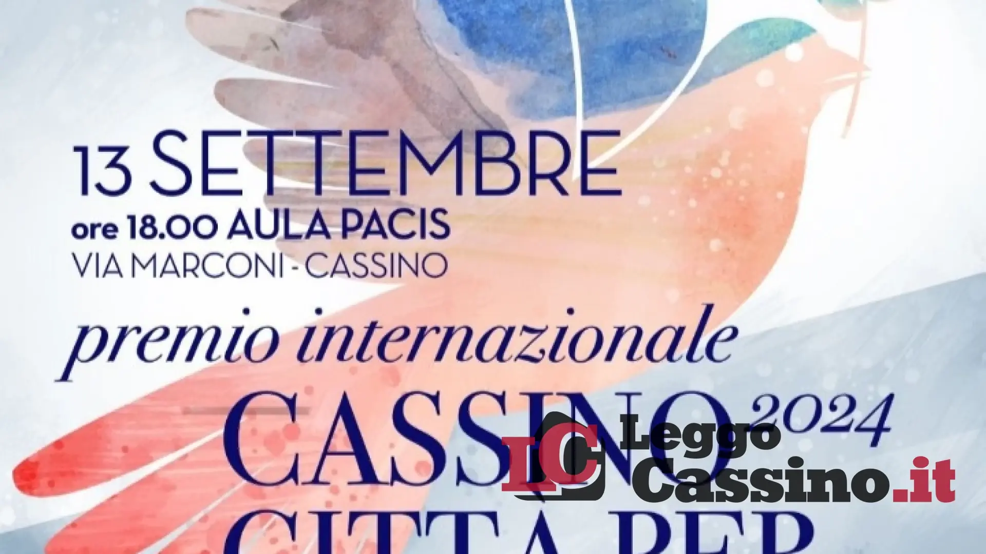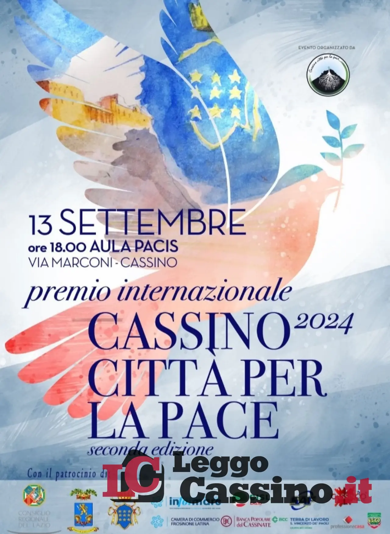 La seconda edizione del Premio Internazionale 'Cassino Città della Pace' si terrà venerdì 13 settembre alle ore 18:00 presso l’aula Pacis di Cassino.
