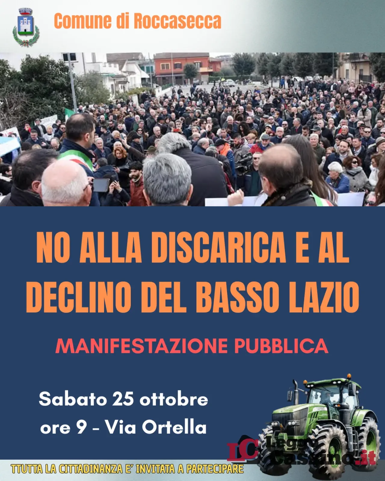 "Come già fatto in passato – ha dichiarato il sindaco di Roccasecca, Giuseppe Sacco – c’è bisogno di far sentire la voce di un’intera comunità e di tutto il basso Lazio, in maniera pacifica, rispettosa delle regole, ma al tempo stesso netta e decisa".