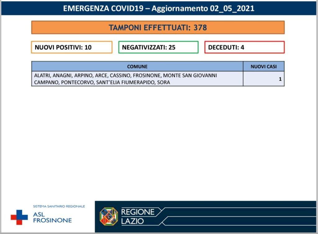 Nelle ultime 24h sono stati effettuati solo 378 tamponi in Ciociaria, per via del fatto che ieri era un giorno festivo e non tutti i drive in della Provincia erano attivi. Stessi numeri si verificheranno probabilmente nella giornata odierna e verranno riportati nel bollettino di domano. Oggi registrato 10 nuovi casi di positivi al Sars-CoV-2 e sono 25 i negativizzati.