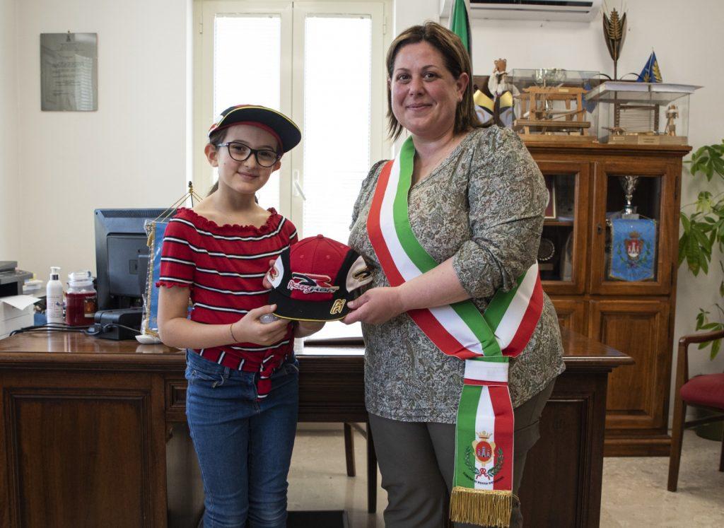 La piccola campionessa ha regalato un cappellino del suo team DR Racing al sindaco e tra gli applausi generali è partito il più grande augurio alla piccola Giada.