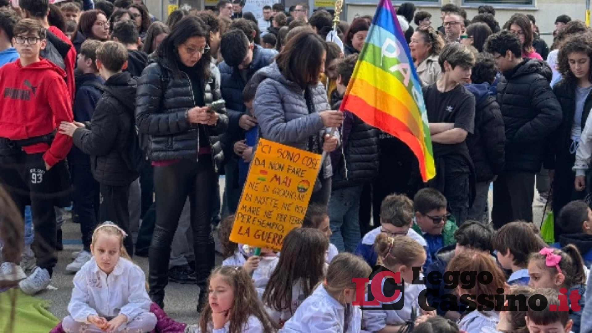 A lanciare l’appello corale sono stati oltre 700 studenti degli istituti scolastici della città che hanno animato l’evento – moderato dai giornalisti Michele Giannì e Laura D’Onofrio – svoltosi davanti al Monumento ai Caduti. Qui il sindaco Enzo Salera, l’abate di Montecassino dom Luca Fallica e i tedofori del Cus hanno acceso il braciere commemorativo utilizzando la luce della Fiaccola benedettina.