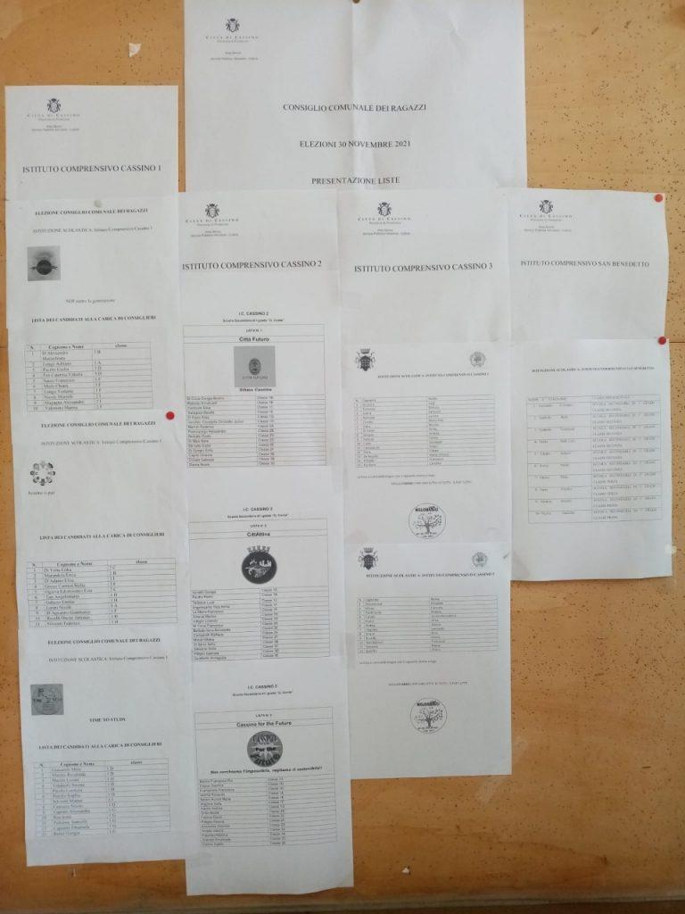 Presentate le liste elettorali per il rinnovo del Consiglio Comunale dei Ragazzi di Cassino. Dopo la firma del decreto sindacale con cui il primo cittadino Enzo Salera ha stabilito la data del 30 novembre per l'elezione dei 15 giovani consiglieri, la macchina elettorale si è subito messa in moto e ieri mattina sono arrivate presso gli uffici dell'Assessorato all'istruzione 9 Liste per un totale di 116 candidati suddivisi tra gli alunni della Scuola Secondaria di IG dei tre Istituti Comprensivi e dell’Istituto Paritario San Benedetto.