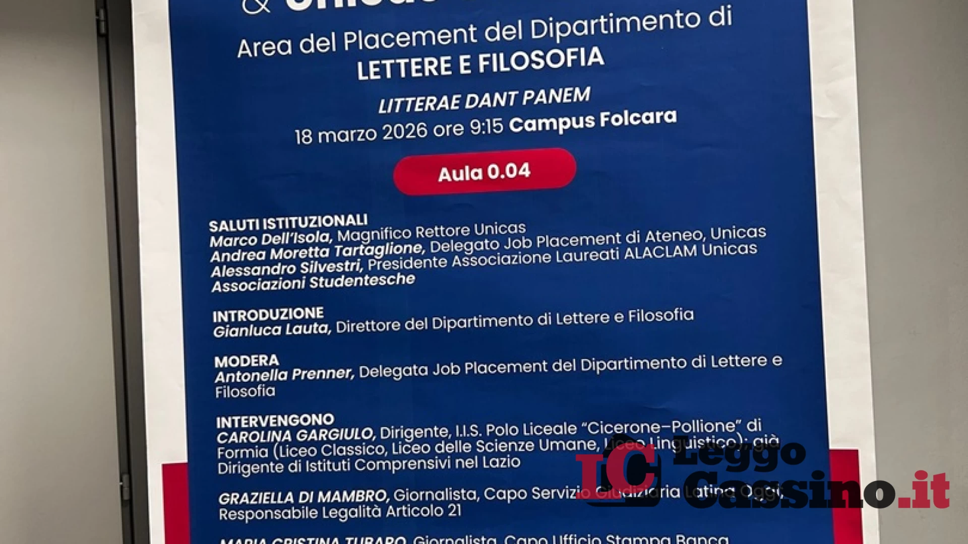 L'appuntamento è per domani, giovedì 19 marzo, con "Unicas Orienta", che rappresenta il naturale completamento del Career Day: lo scopo è quello di invitare gli studenti in uscita dalle scuole superiori ad iscriversi o a trasferirsi all'Università di Cassino e del Lazio Meridionale.