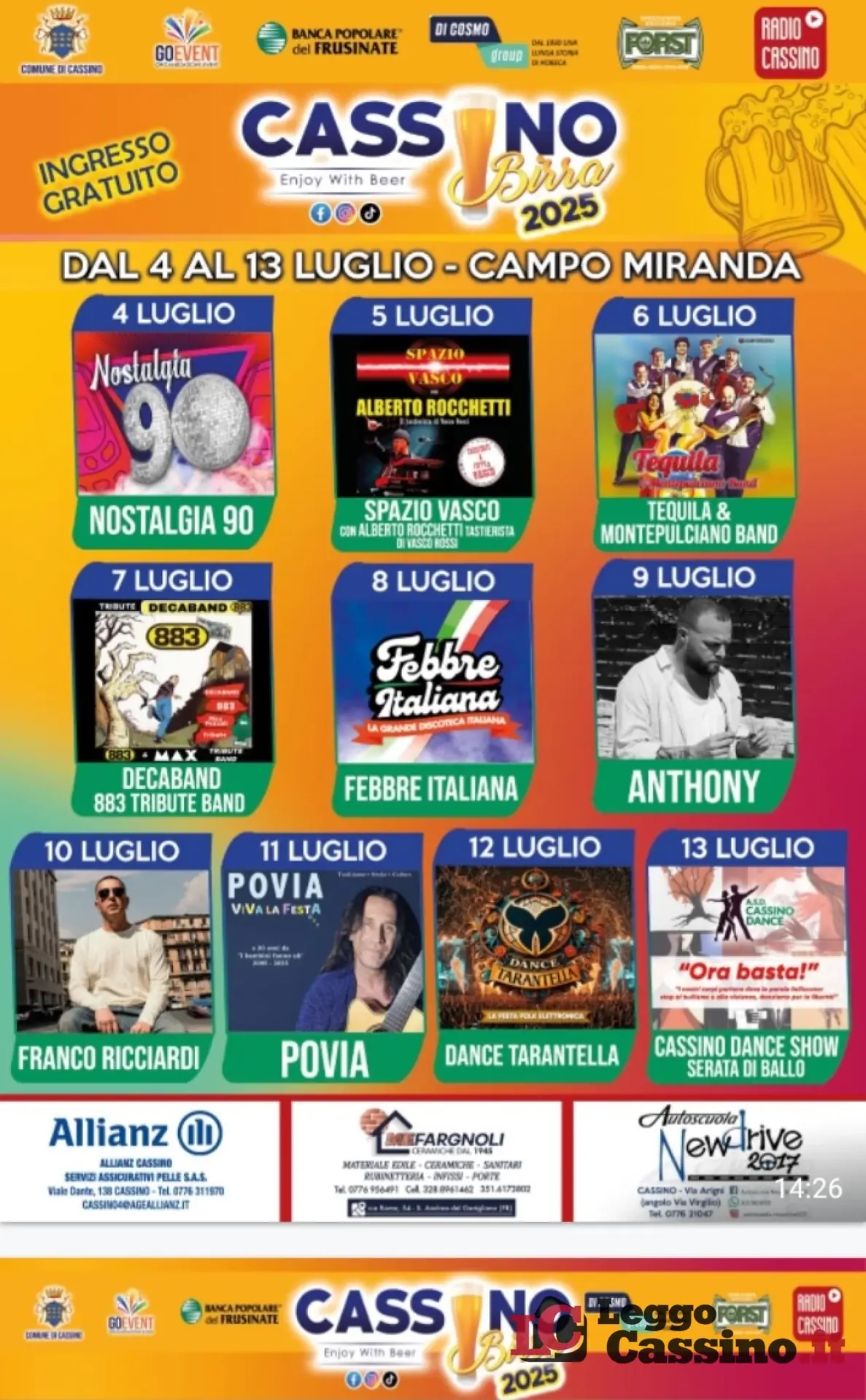 L’organizzatore della manifestazione Oscar Grimaudo e presidente di Go Event, ha sottolineato: “Anche il secondo appuntamento musicale molto emozionante e coinvolgente ha registrato un grande sold out con “Spazio Vasco” ed il mitico Alberto Rocchetti. Vi aspettiamo in tanti questa sera con i “Tequila & Montepulciano Band”.