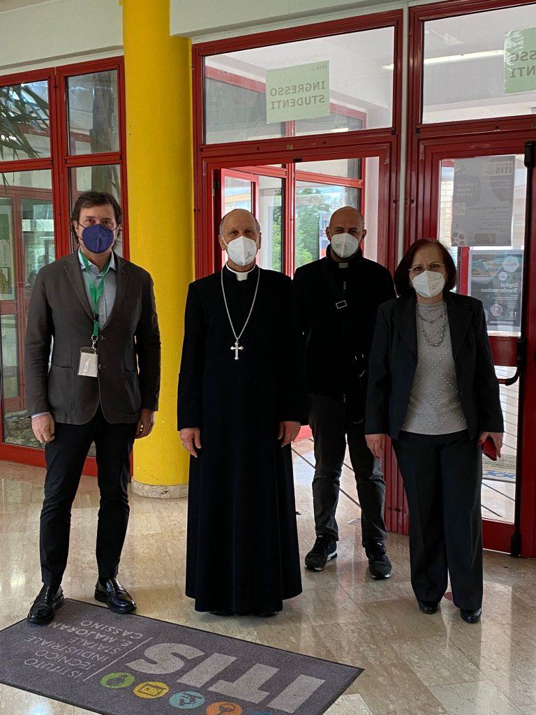 A conclusione dell’intervento, il dirigente scolastico, prof. Pasquale Merino, è intervenuto affermando: “L’'identità cristiana è imprescindibile nella costruzione umana dello studente e, in prossimità delle festività pasquali, esorto gli insegnanti a soffermarsi su questa verità.. La scuola deve essere un luogo educativo e ciò che raccomando ai docenti è di essere prima di tutto degli educatori”. Prima dei saluti finali viene donata a Sua Eccellenza, in segno di gratitudine ed amicizia, una maglietta e a sua volta fa dono al dirigente di un simbolo di “pace”.
