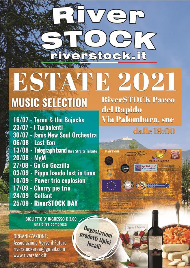 Da questa sera, venerdì 16 luglio, al 25 settembre 2021, tutti i venerdì, presso RiverSTOCK – Parco del Rapido in via Palombara a Cassino, immersi in un’ampia area verde appositamente attrezzata costeggiante le rive del Rapido, si svolgeranno 11 eventi durante i quali si potranno degustare prodotti tipici locali. Ad ogni workshop sarà presente una band musicale che accompagnerà la serata.