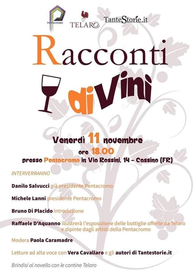 Ringrazio Pentacromo  e il sito tantestorie.it  che venerdì ci accompagneranno in un percorso sensuale affascinante avendo come elemento centrale il vino, il nettare degli dei' - dichiara Danilo Grossi assessore alla cultura del comune di Cassino.
