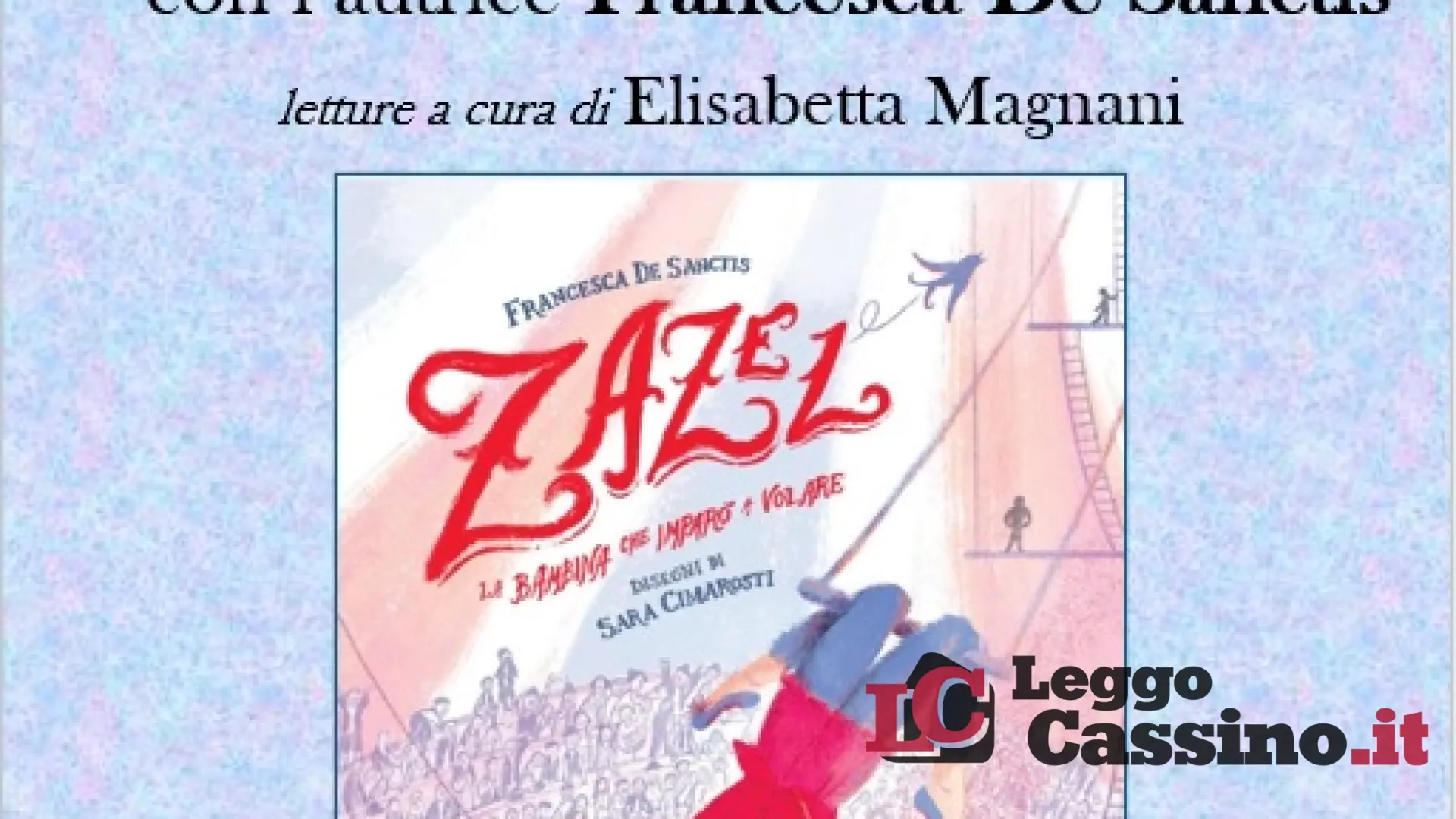 L'appuntamento è fissato per le ore 18:00. De Sanctis presenterà alla sua città natale la sua ultima fatica letteraria: «Zazel - La donna cannone» (Gallucci editore), una graphic novel illustrata da Sara Cimarosti che in pochissimi giorni si è trasformata in un vero e proprio caso editoriale. Uscito lo scorso 14 novembre, il volume è andato esaurito nel giro di una settimana, costringendo l'editore a una ristampa immediata a tempo di record.