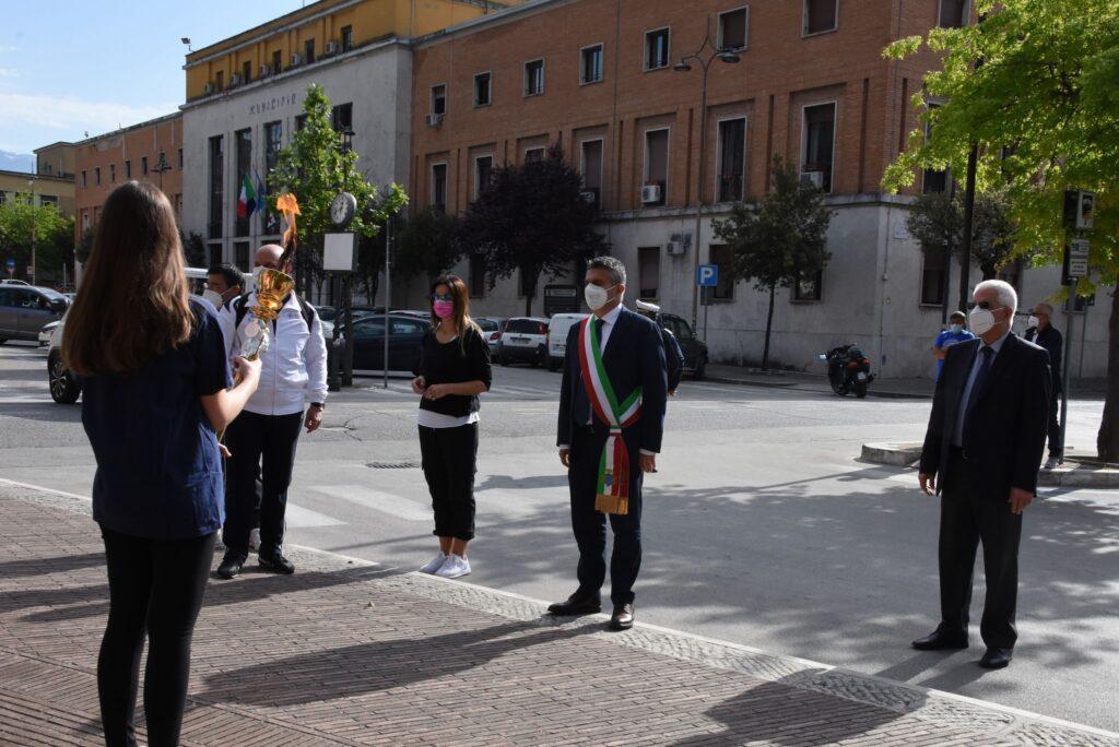Presente il sindaco, Enzo Salera, la presidente del Consiglio comunale, Barbara di Rollo, il presidente del Cus, Carmine Calce, dopo l’accensione del tripode del Monumento ai Caduti in piazza De Gasperi, prima di dare inizio alla “Marcia per l’Europa”, la bella iniziativa alla cui organizzazione, accanto al dirigente scolastico, Marcello Bianchi, ha lavorato molto il prof. Antonio Riccardi, l’alunna, Elisa Di Raddo, dell’Istituto di Istruzione Superiore “Medaglia d’oro”-Città di Cassino”, ha letto il seguente passo del “Manifesto di Ventotene” di Altiero Spinelli: “ La battaglia che dobbiamo fare è una battaglia di impegno perché ci sia un’Europa Vera, un’Europa della Democrazia, un’Europa del Popolo”.