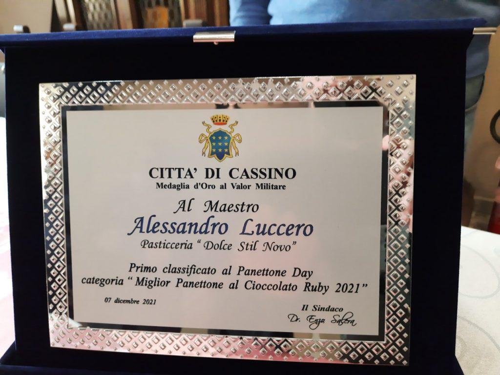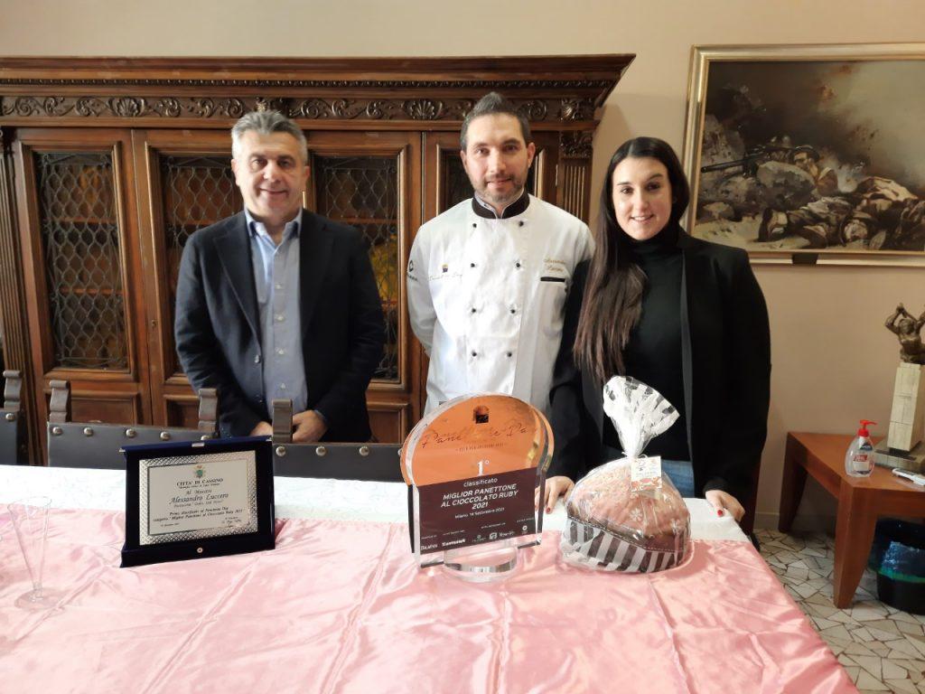 E’ stato ricevuto in Comune, questa mattina, Alessandro Luccero, il maestro pasticciere, primo classificato a Milano per il panettone al cioccolato più buono d’Italia. Il sindaco, Enzo Salera, gli ha consegnato una targa con su scritto: “Al Maestro Alessandro Luccero, Pasticceria “Dolce Stil Novo”, primo classificato al Panettone Day, categoria Miglior Panettone al cioccolato Ruby 2021”.