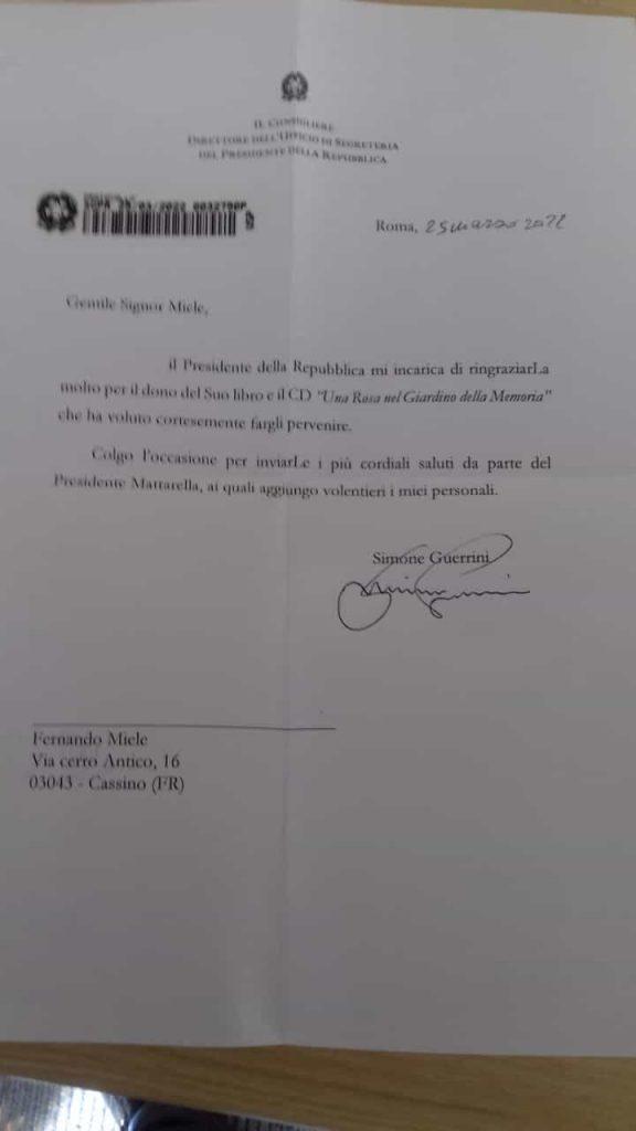 Nei giorni scorsi Fernando ha voluto far avere copia del suo libro sia a Papa Francesco che al presidente della Repubblica Mattarella. Gli uffici del Quirinale e del Vaticano hanno risposto esprimendo vicinanza