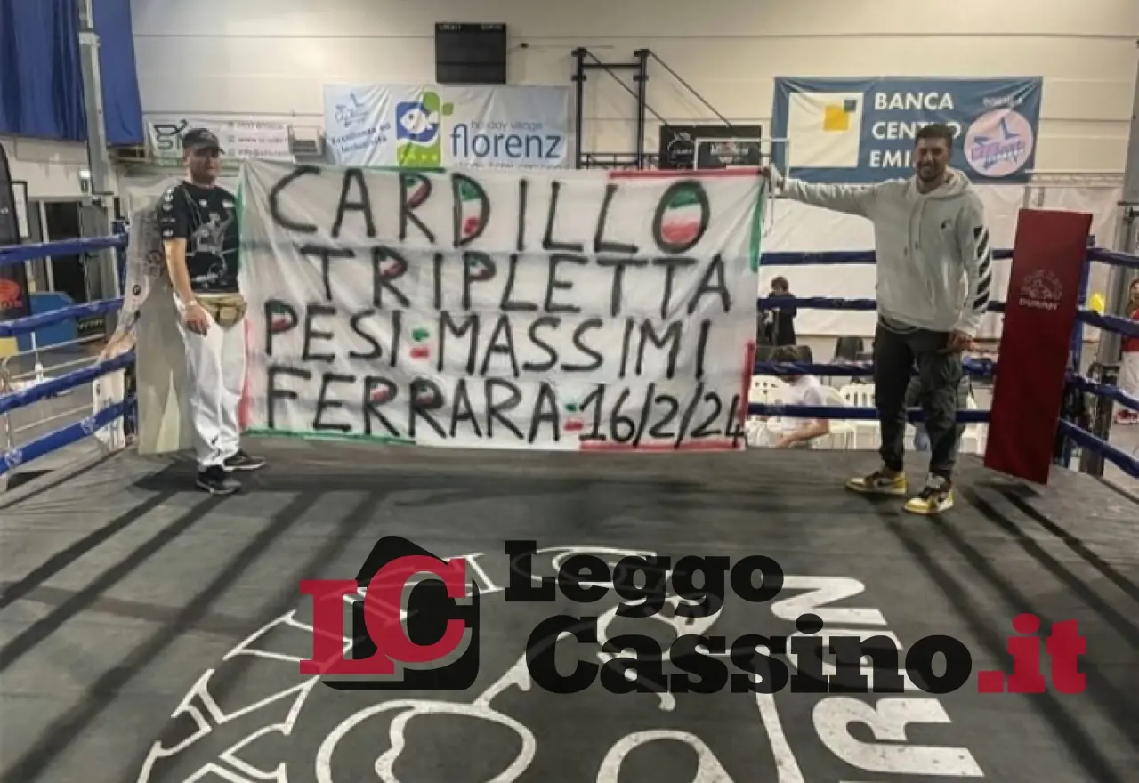 Venerdì 16 Ottobre il nostro concittadino Gianmarco Cardillo difendeva e confermava il titolo Italiano di pugilato categoria pesi massimi a Ferrara contro lo sfidante Venturelli. Facciamo un breve passo indietro. Una settimana prima conferenza stampa a Cassino con la presenza di Cardillo, il suo team e l’Amministrazione comunale con l’assessore allo sport Maria Concetta Tamburrini e il presidente della commissione sport consigliere Fabio Vizzacchero. In quella sede fu ufficializzato l’incontro di difesa del titolo Italiano di pesi massimi contro lo sfidante Venturelli a Ferrara. L’amministrazione contribuiva mettendo a disposizione per la trasferta a Ferrara un pullman , da permettere così ai familiari e amici di poter supportare Gianmarco durante l’incontro.