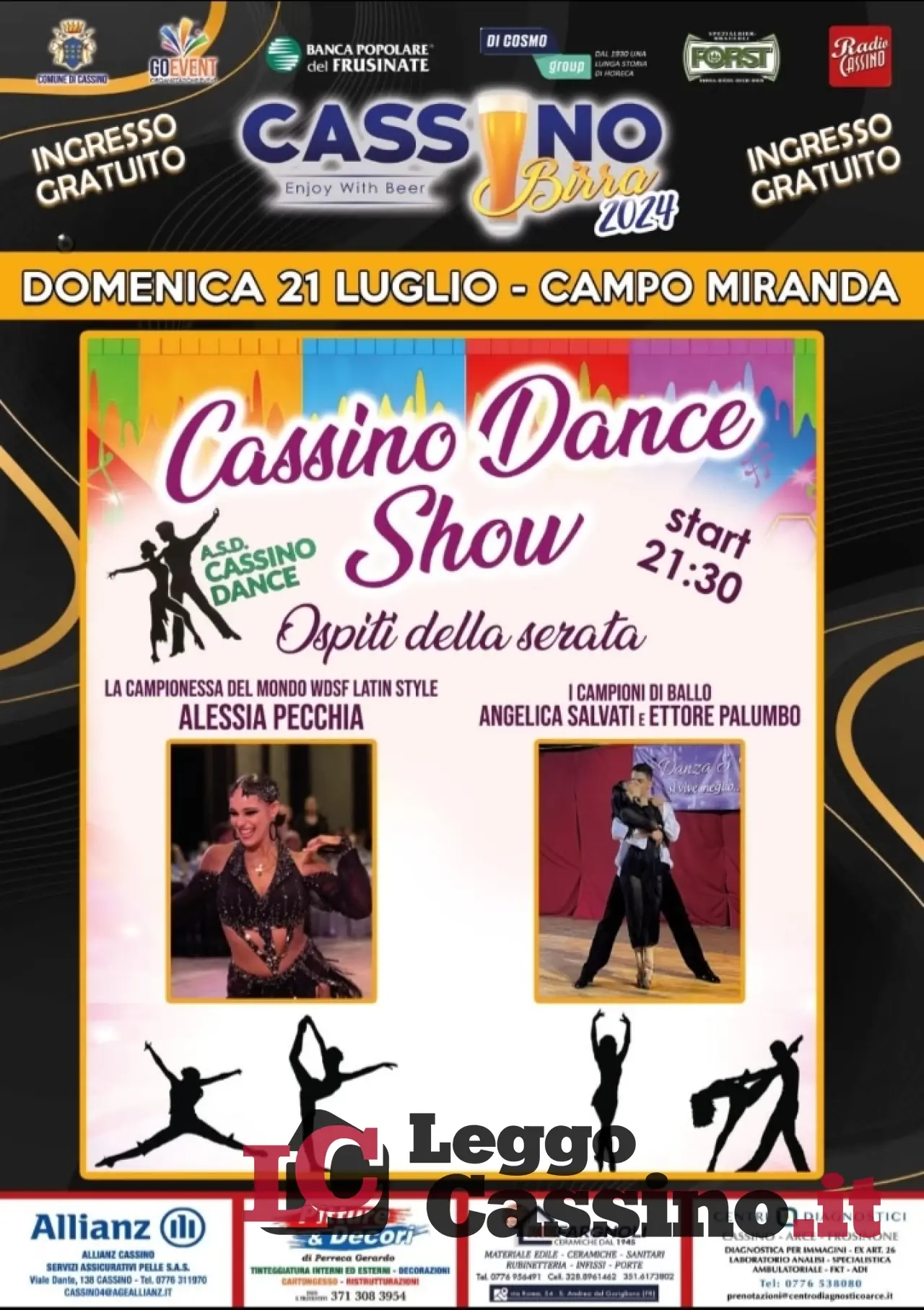 Questa sera a Cassino Birra 2024 sarà protagonista la Cassino Dance Show. Ospiti della serata saranno la campionessa del mondo WDSF Latin Style Alessia Pecchia, ed i Campioni di ballo Angelica Salvati ed Ettore Palumbo.