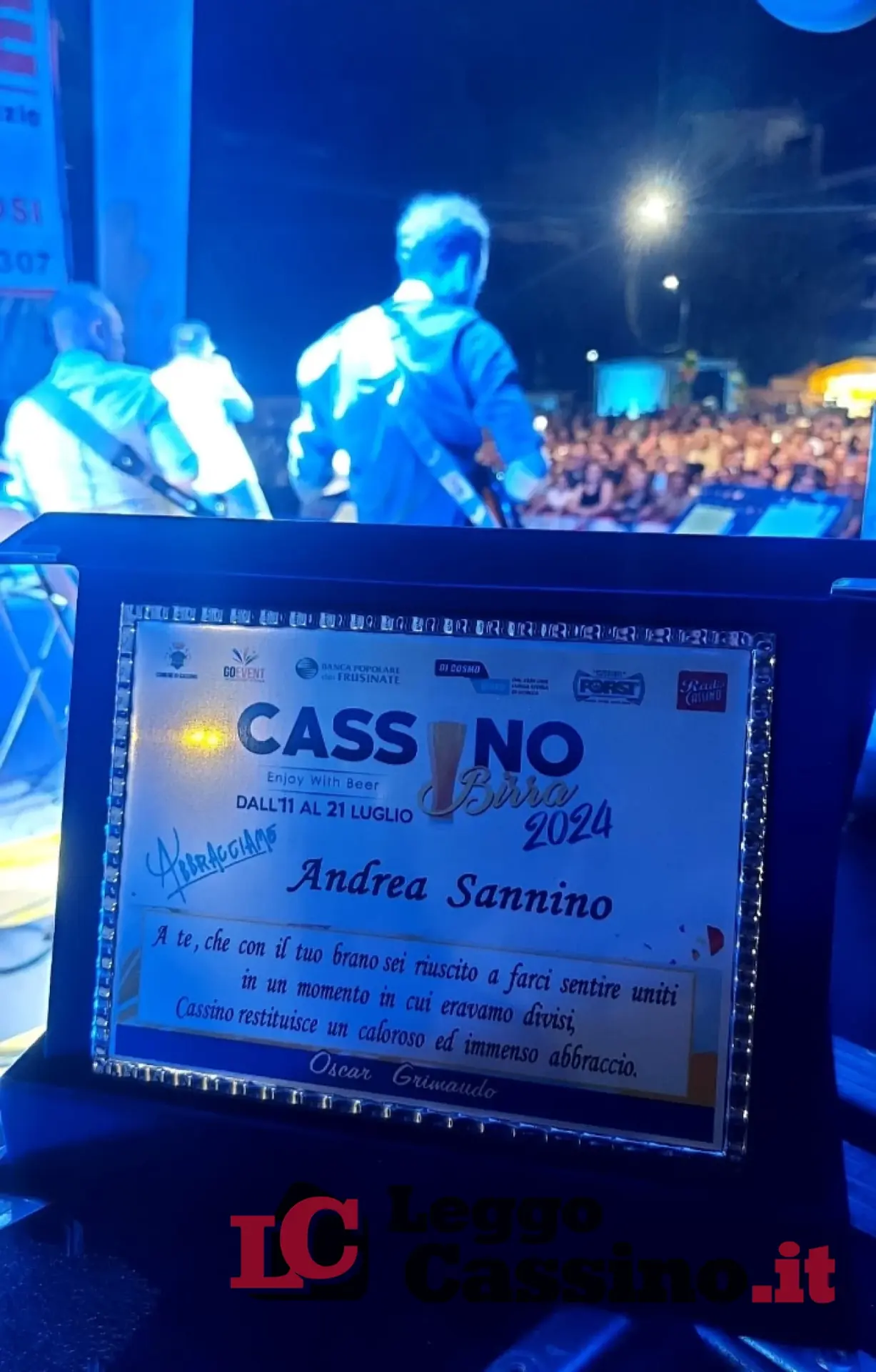 Ieri invece in Campo Miranda si è esibito il cantautore Andrea Sannino che ha incantato la piazza stracolma con i suoi bellissimi brani musicali. L’organizzatore di Cassino Birra, Oscar Grimaudo ha donato al famosissimo cantante una targa con la seguente scritta: “A te, che con il tuo brano sei riuscito a farci sentire uniti in un momento in cui eravamo divisi, Cassino restituisce un caloroso ed immenso abbraccio”.