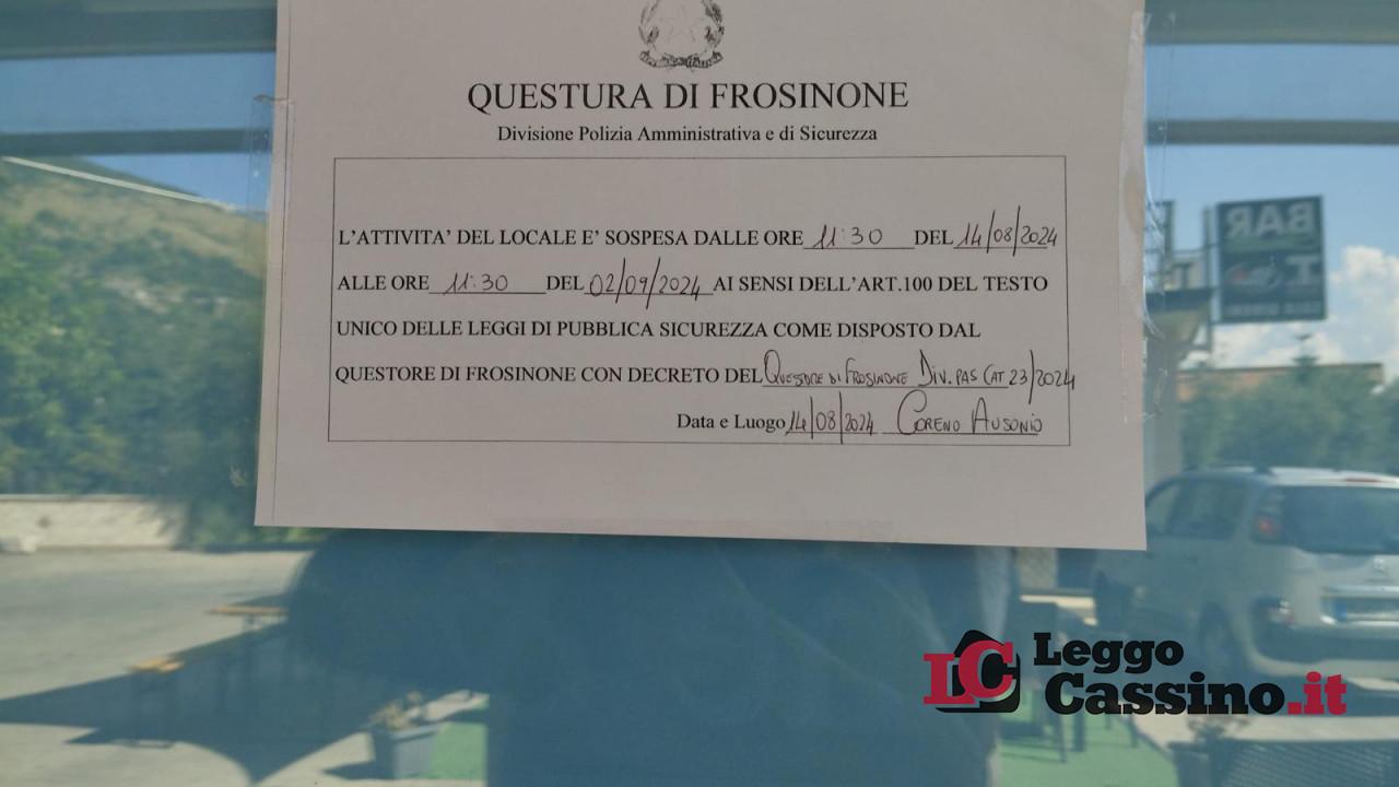 Il sig. Questore di Frosinone, dott. Domenico Condello, ha emesso un provvedimento di sospensione della licenza di pubblico esercizio nei confronti di un soggetto titolare di un esercizio commerciale situato in Coreno Ausonio.
