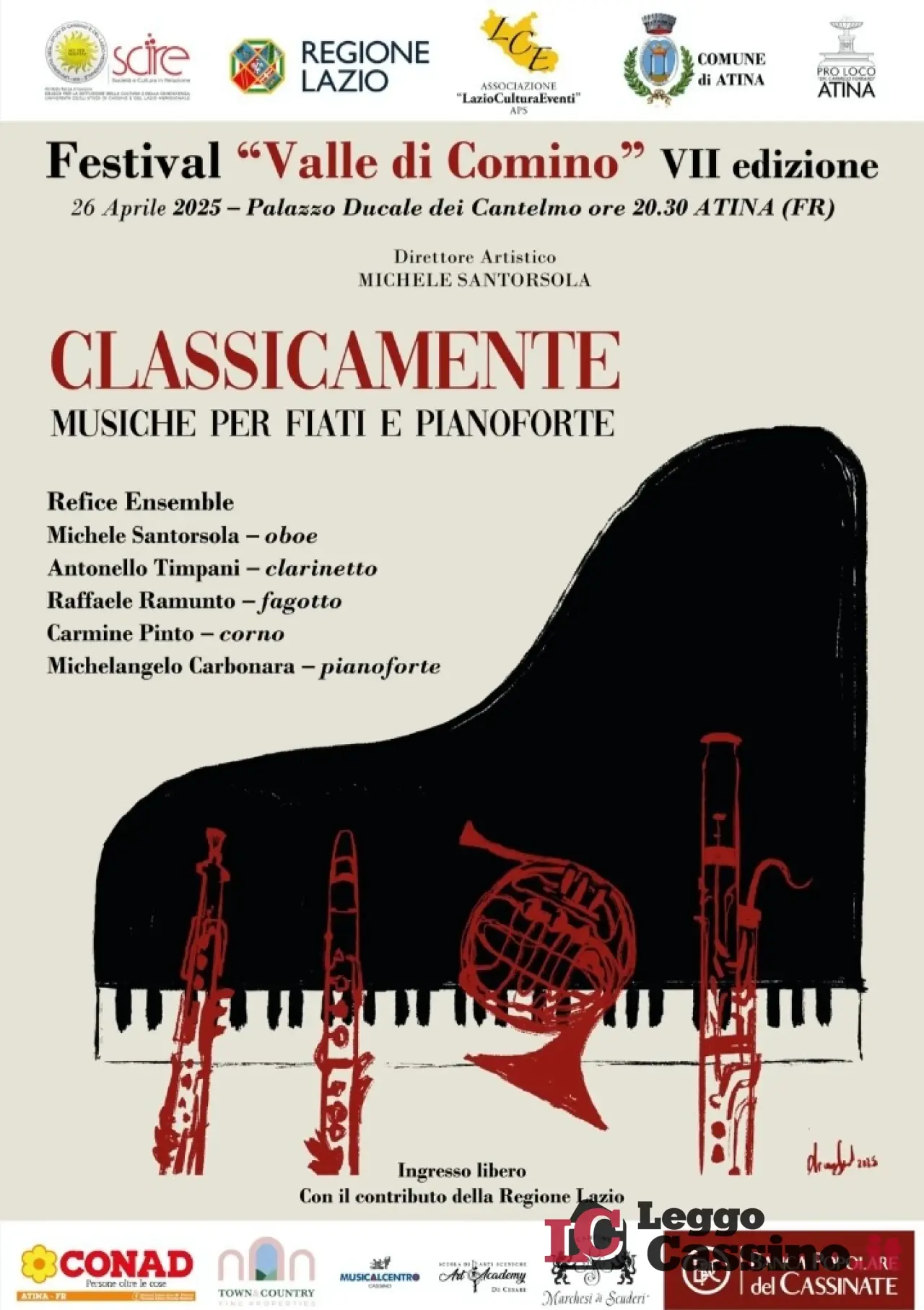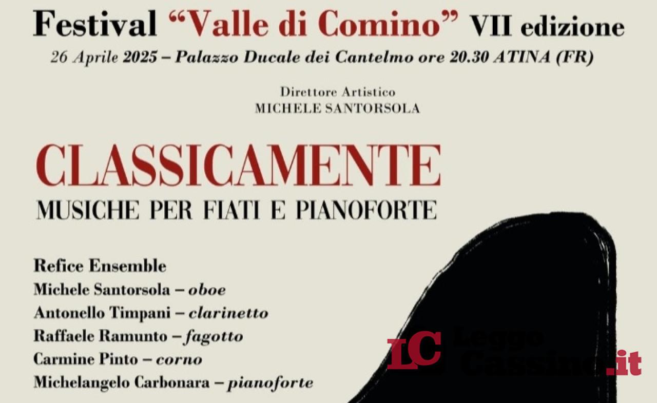 La Valle di Comino si prepara ad accogliere due imperdibili eventi musicali della VII edizione del Festival "Valle Di Comino", organizzato dall'Associazione "LazioCulturaEventi" LCE – APS, presieduta dalla professoressa Antonella Musilli, con il contributo della Regione Lazio, del Comune di Atina, della Proloco e della Banca Popolare del Cassinate. I concerti si propongono di offrire al pubblico due fine settimana all’insegna della musica di alta qualità, tra classico e colonne sonore.