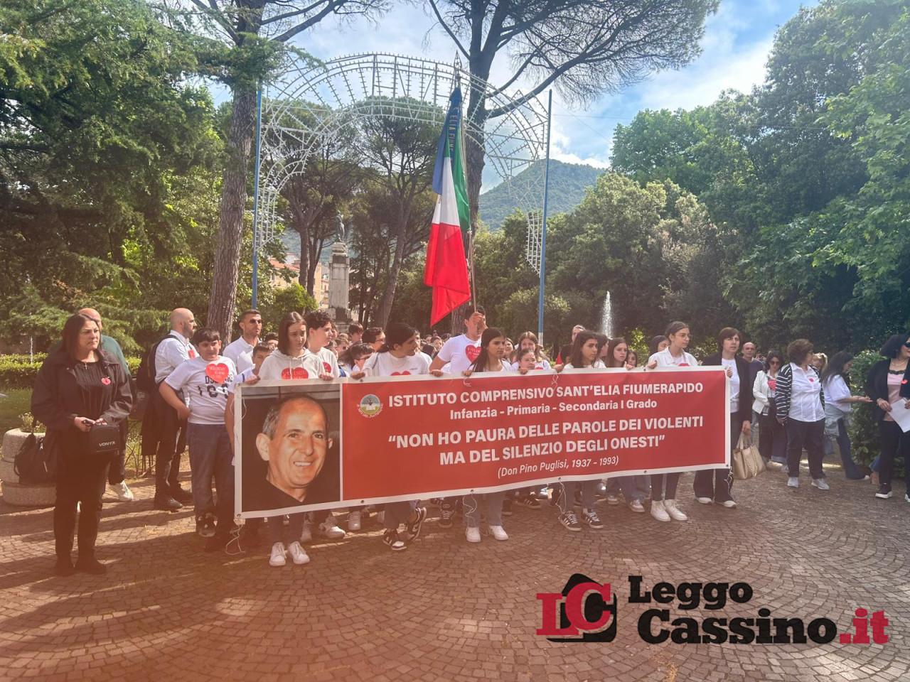 Alle ore 9:45, gli studenti della scuola secondaria di primo grado hanno marciato in silenzio lungo via IV Novembre, intonando la canzone “I cento passi” – simbolo di ribellione alla mafia e tributo a Peppino Impastato – e portando con sé uno striscione con il volto di don Pino Puglisi, il prete ucciso dalla mafia nel 1993. Un gesto semplice ma potente, che ha reso visibile la consapevolezza crescente delle nuove generazioni.