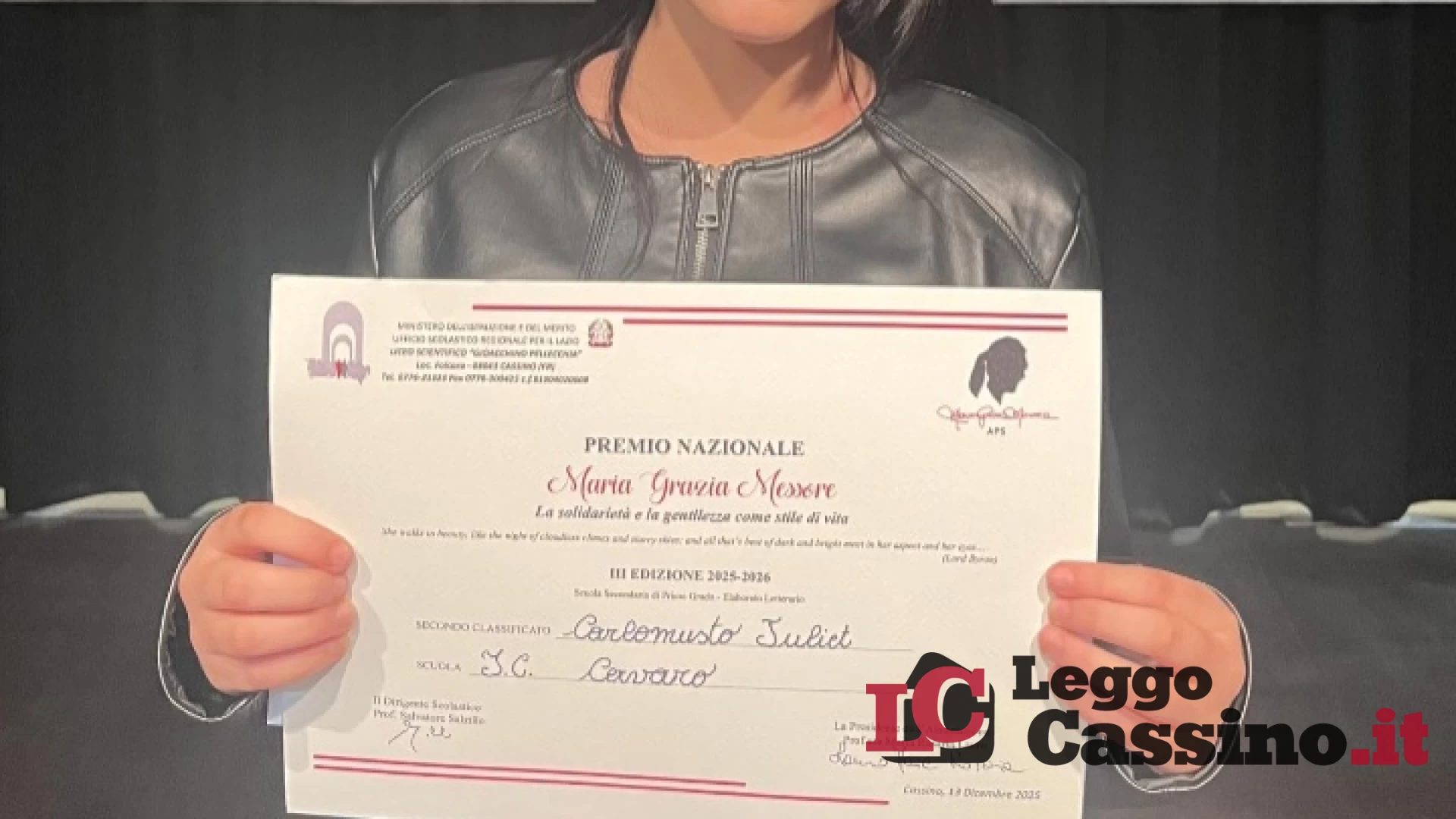 Accanto al successo di Juliet Carlomusto, il Premio ha visto distinguersi anche ex alunni dell’Istituto Comprensivo di Cervaro – plesso di San Vittore del Lazio, oggi impegnati nelle scuole secondarie di secondo grado del territorio. La prova si è svolta il 21 novembre 2025 presso il Liceo Scientifico “G. Pellecchia”, mentre la cerimonia di premiazione ha avuto luogo nel pomeriggio di sabato 13 dicembre, alla presenza di studenti, famiglie e docenti.