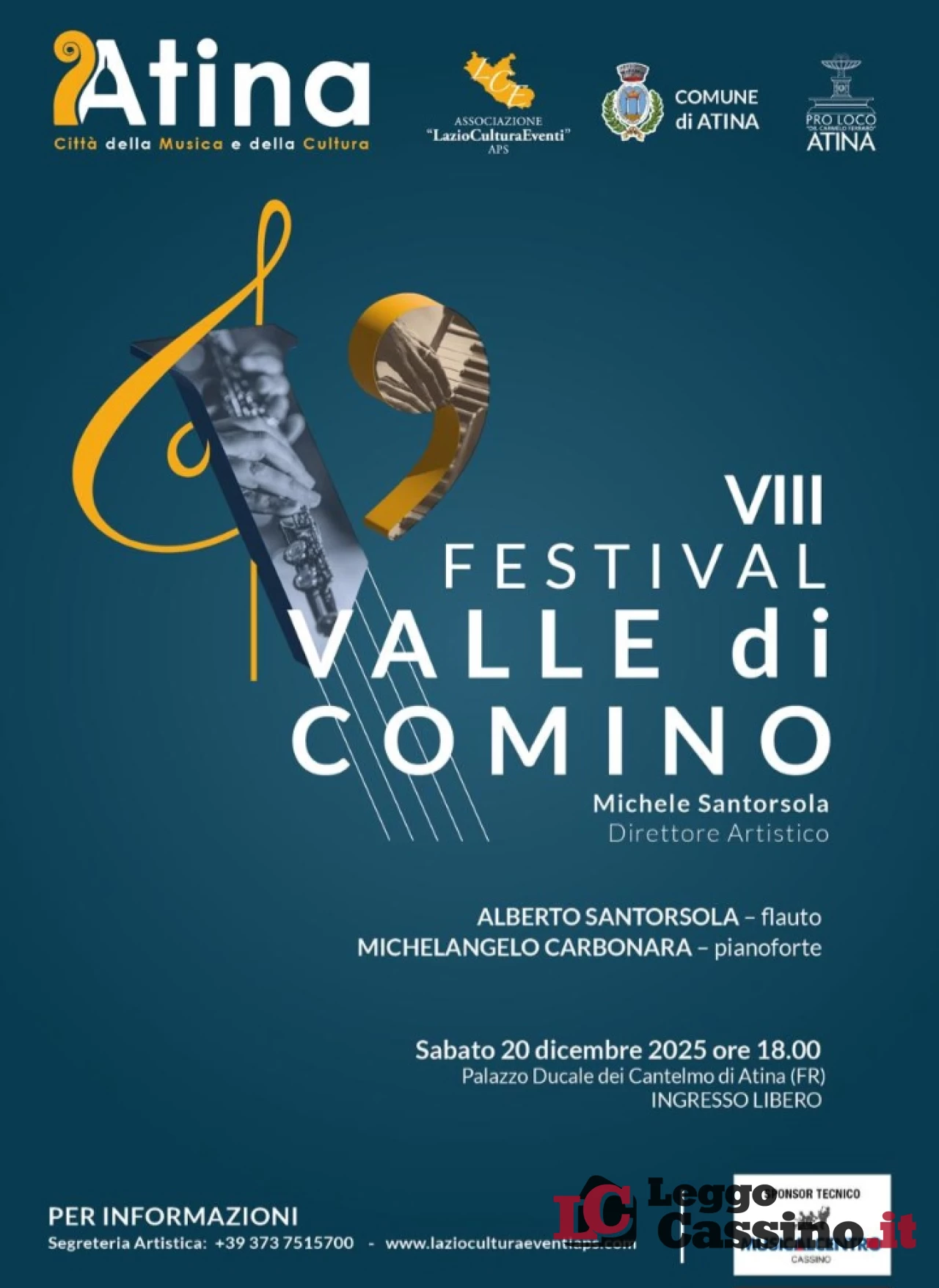 Si terrà venerdì 20 dicembre alle ore 18.00, nella cornice storica e suggestiva del Palazzo Ducale dei Cantelmo di Atina, il concerto anteprima della nuova edizione del Festival “Valle di Comino”, manifestazione culturale giunta con orgoglio al suo ottavo anno di vita.