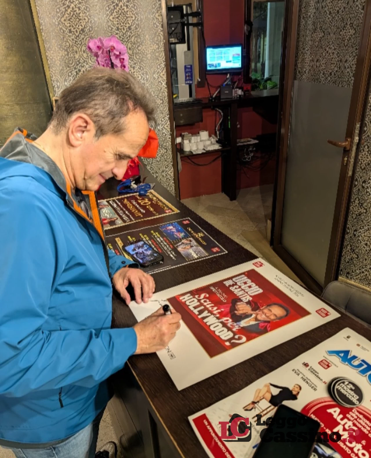 Serata esilarante, al Teatro Manzoni Cassino, grazie alla travolgente simpatia di Uccio De Santis che, con lo spettacolo "Scusi, per Hollywood?" è riuscito a far divertire senza sosta il numeroso pubblico presente. Coinvolgendolo a più riprese fino a portare le storie di alcuni degli ospiti in platea anche sul palco. Merito della capacità di improvvisazione dell'artista, che ha stravolto il copione inserendo gag incentrate su usi, costumi e personaggi del territorio. Nulla di irrispettoso, ma l'ilarità involontaria di tre pensionati di Sant'Elia Fiumerapido, Cervaro e Scauri ha arricchito non poco la già piacevole interpretazione del comico pugliese.