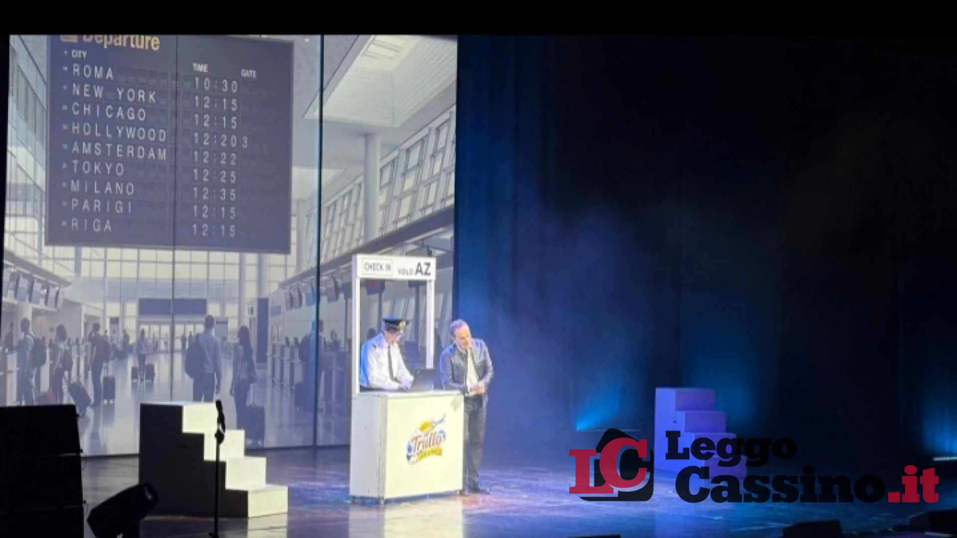 Una gag dietro l'altra e applausi a non finire anche grazie alla coincidenza del venerdì 17 che rappresenta sempre una sfida anche per chi superstizioso non è; la successione di sketch con i personaggi iconici del repertorio dell'artista, e naturalmente la trama di questo ipotetico viaggio oltreoceano che non riesce a decollare, hanno regalato alla platea una piacevolissima parentesi di fine settimana.