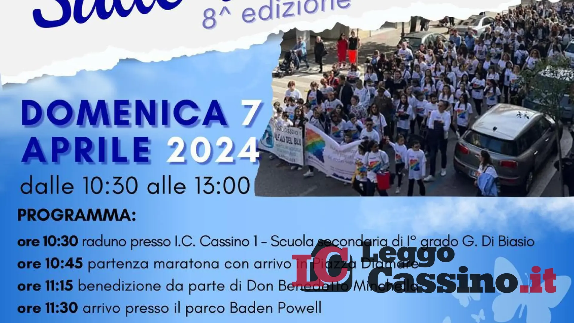 Il 7 Aprile ci sarà la marcia che attraversa il centro di Cassino per concludere la mattinata con dei lavoratori sportivi , ludici e momenti di giochi presso il parco Baden Powell! Siete tutti invitati