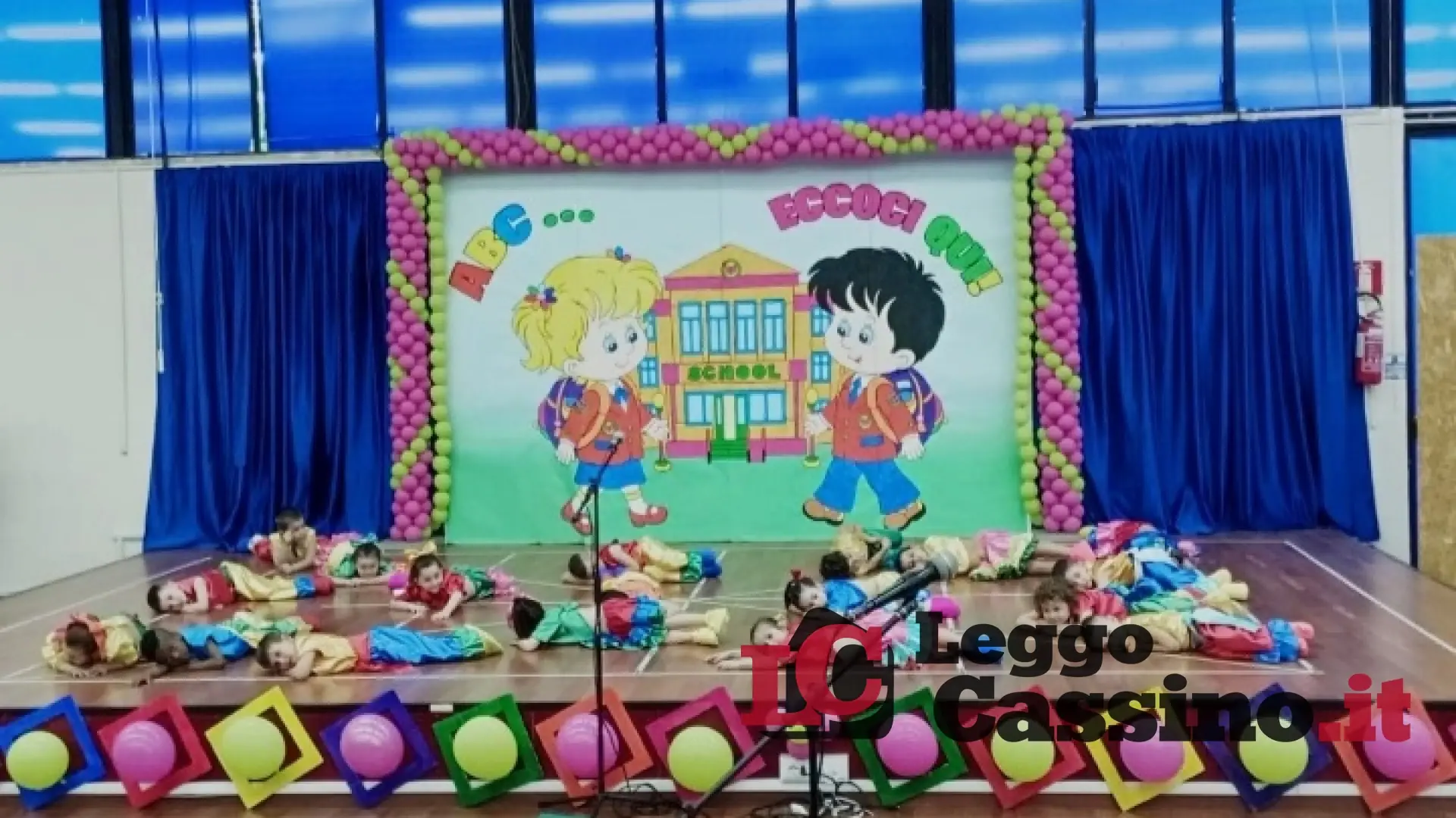 A chiusura del corrente anno scolastico i piccoli di quattro e cinque anni delle sezioni A, B e C della Scuola dell'Infanzia di via Arigni dell'Istituto Comprensivo Cassino 3,nei giorni scorsi, si sono esibiti in "ABC...eccoci qui" una colorata ed avvincente manifestazione che ha visto, i bambini protagonisti, impegnati in intensi momenti di recitazione, di canto e di danza. L'evento si è svolto presso l'auditorium dell'IIS Medaglia d'oro "Città di Cassino".