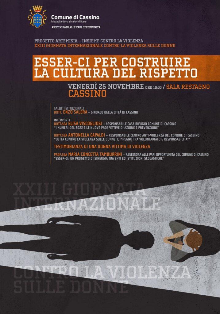 Venerdì 25 novembre ore 10:00 presso Sala Restagno del Comune di Cassino, “ESSER-CI PER COSTRUIRE LA CULTURA DEL RISPETTO”. L’incontro sarà un vero e proprio percorso tematico in occasione della XXIII giornata internazionale contro la violenza sulle donne.