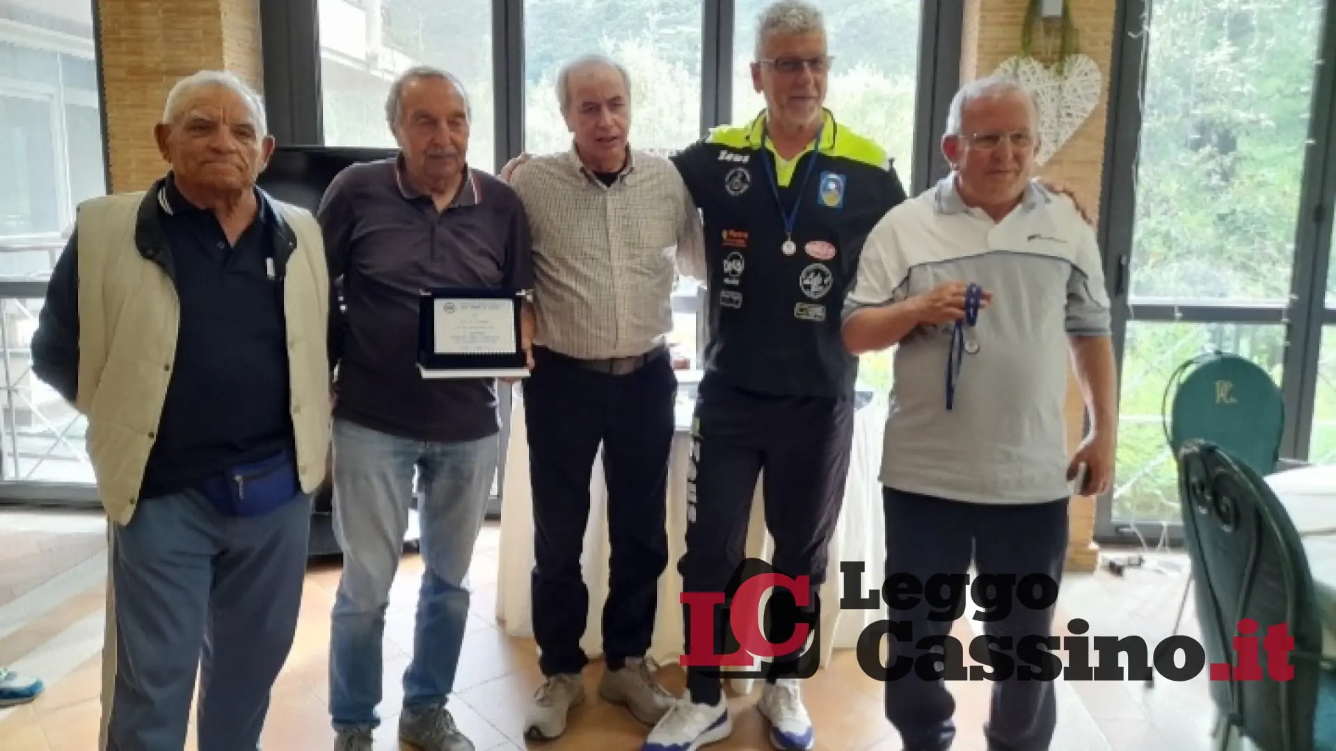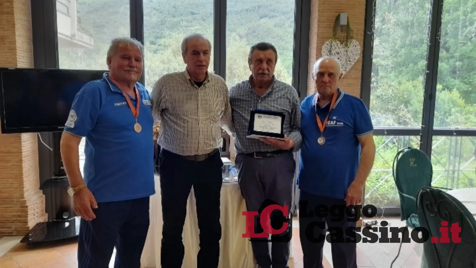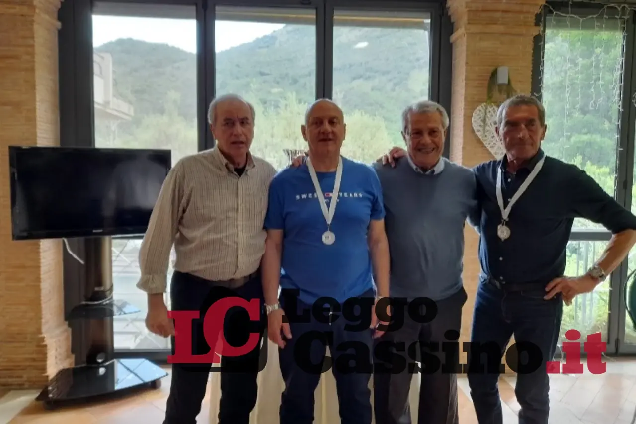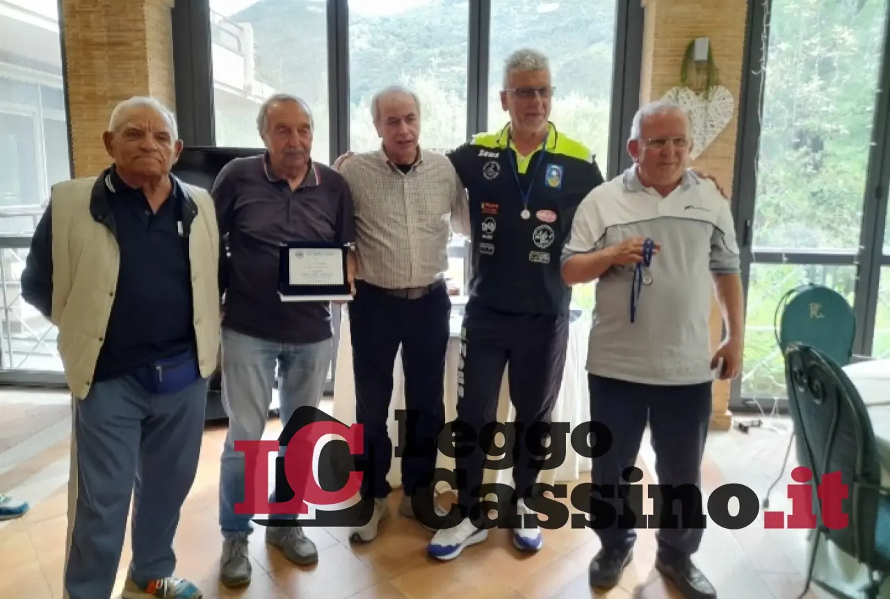 Il Gr. 23 di Cassino con il presidente Eraldo Di Benedetto, il vice Ezio Della Posta, la segretaria Elena Costantini, i giocatori Emilio Corrente e Aquilino Tomasso.