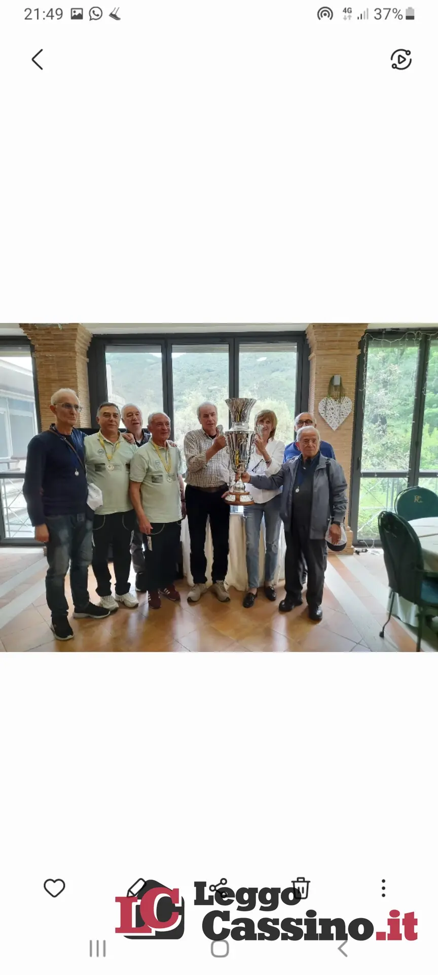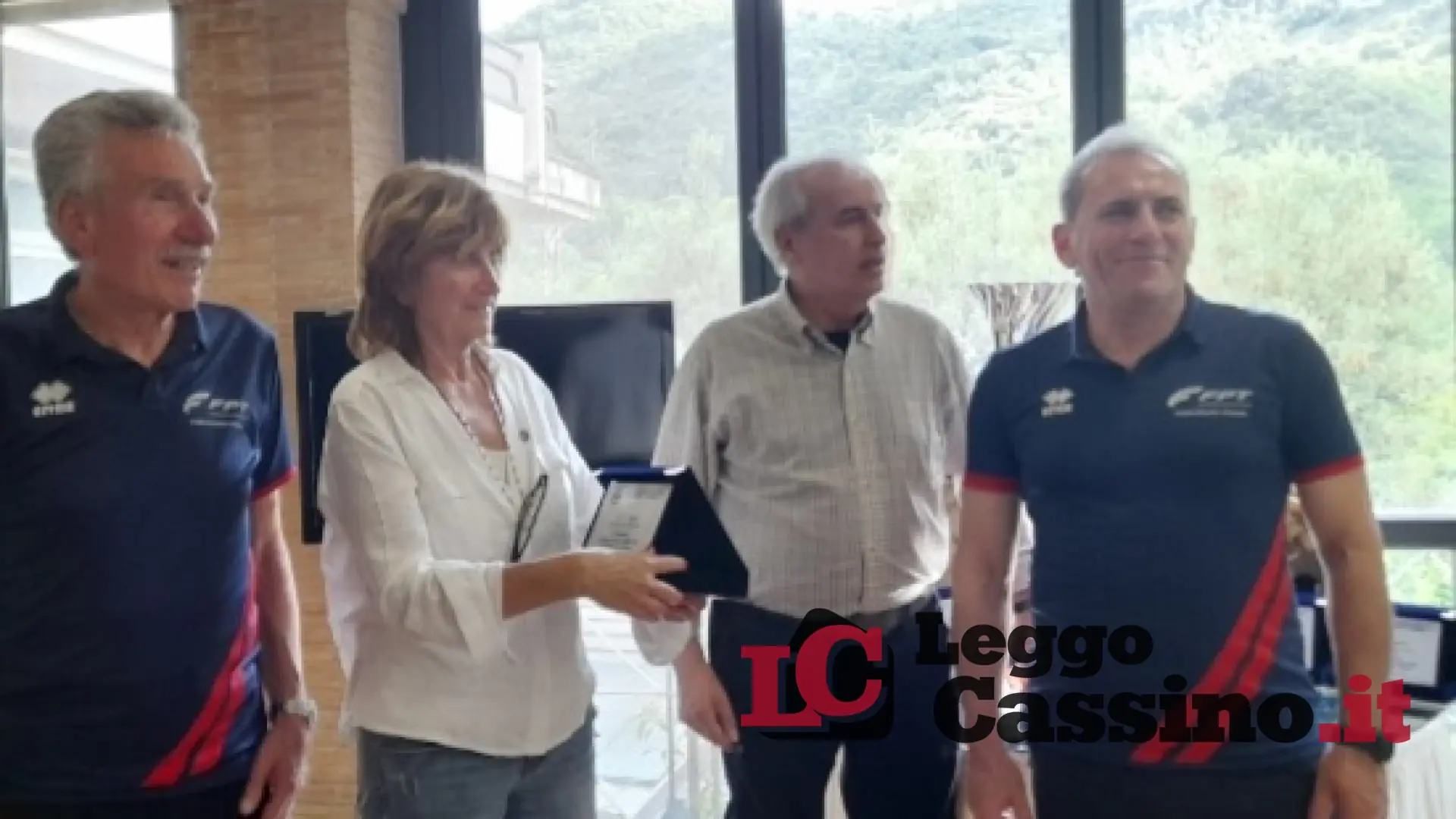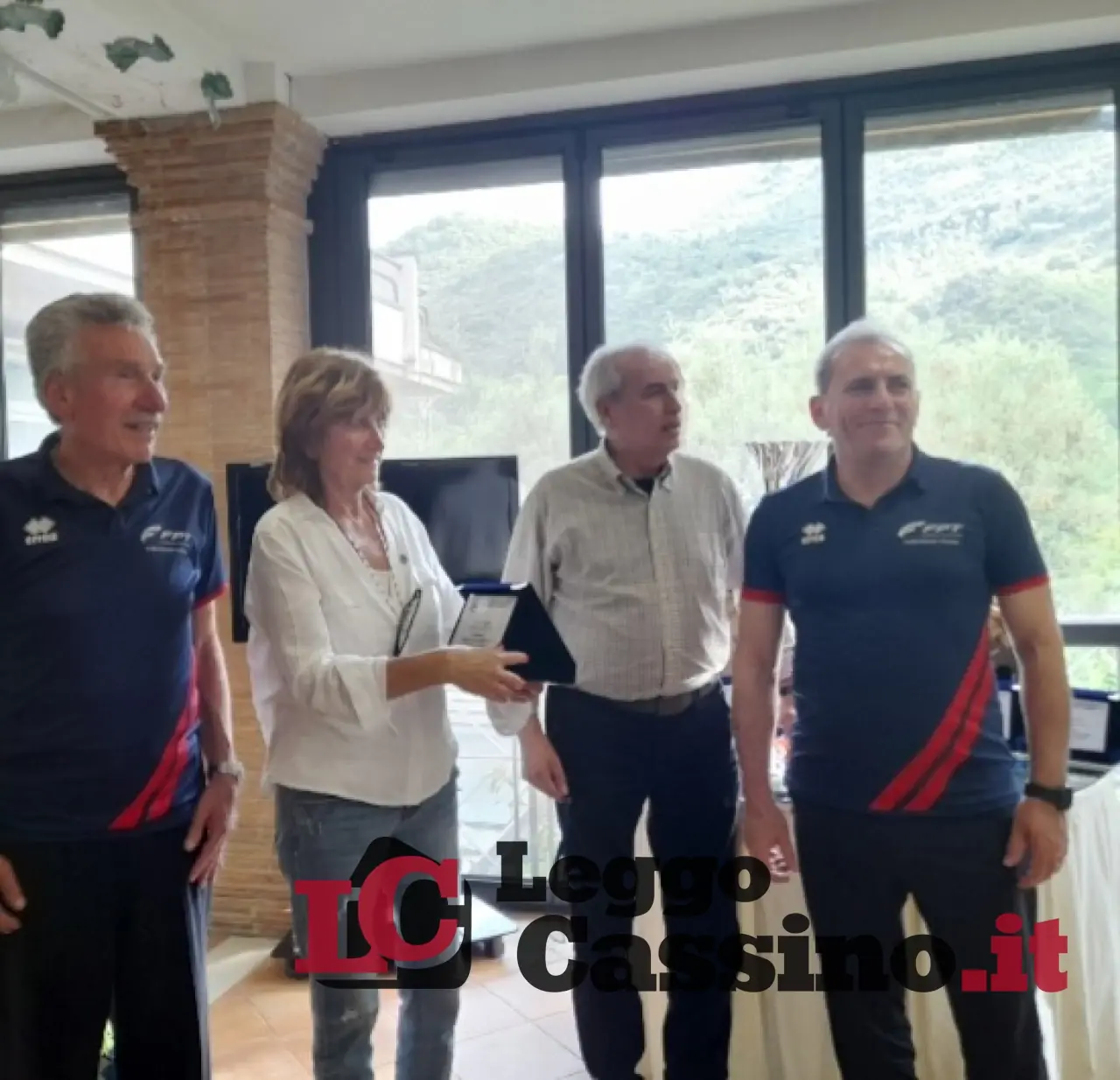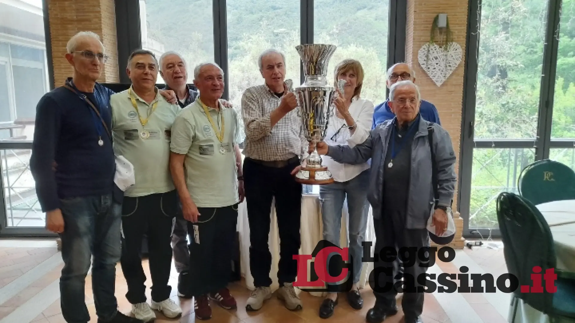 Il Gr. 23 di Cassino con il presidente Eraldo Di Benedetto, il vice Ezio Della Posta, la segretaria Elena Costantini, i giocatori Emilio Corrente e Aquilino Tomasso.