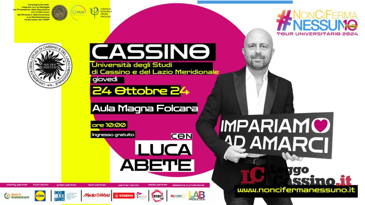 Fa nuovamente tappa a Cassino il tour motivazionale ideato e animato da Luca Abete, rivolto alle nuove generazioni, #NonCiFermaNessuno.