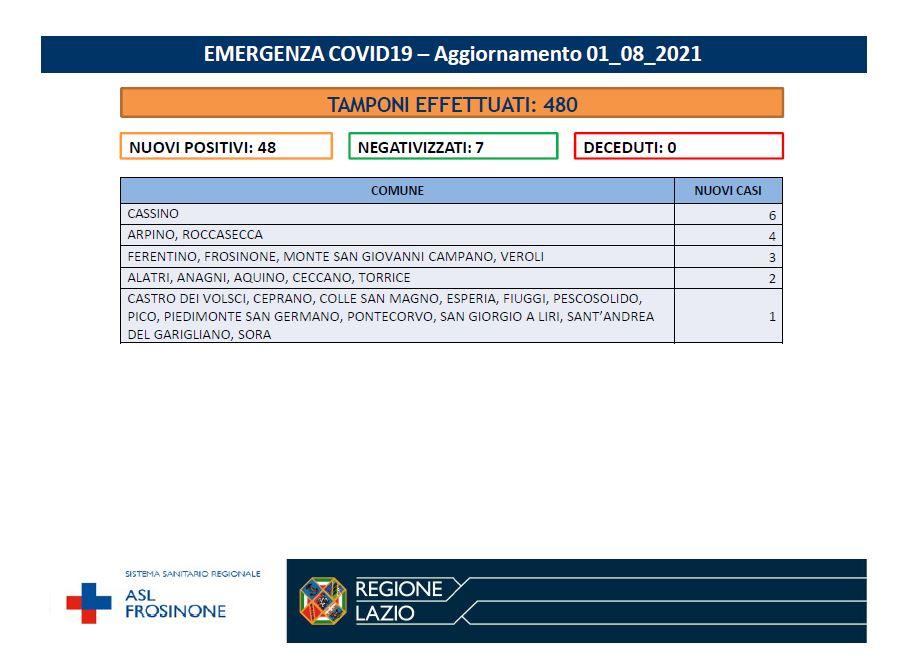 E anche oggi, in Provincia di Frosinone si contano 48 nuovi positivi. Sette i guariti, nessun decesso. Pierpaola D'Alessandro, Direttore generale della ASL di Frosinone, spiega: "La modalità di trasmissione della variante Delta è rapidissima e il rischio di contagio esiste anche in caso di 'incontri fugaci'. Anche la persona vaccinata può contagiare, ecco perché, anche se vaccinati, dobbiamo rispettare le regole al chiuso e in situazioni critiche. Per fortuna abbiamo l’arma del vaccino che la rende meno aggressiva.