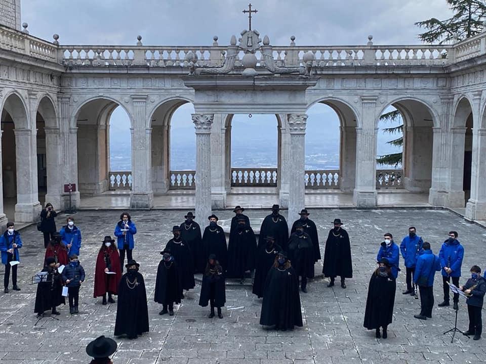 Anche mercoledì pomeriggio, subito dopo il canto della Pasquetta, sono stati riproposti, in ogni tappa del miniviaggio composto da cinque soste, i versi ‘Vecchia Cassino’, lirica del poeta Gino Salveti, musicata dal M° Donato Rivieccio e orchestrata per fiati dal M° Pio Di Meo. L’edizione ridotta del 2022 è iniziata nella parrocchia di San Giovanni, dove il canto è stato dedicato alla professoressa Franca Pinchera, anima culturale dell’associazione, grande sostenitrice e ispiratrice delle attività della ‘Vecchia Cassino’, scomparsa lo scorso 31 agosto. Da San Giovanni, musici e cantori si sono trasferiti a Montecassino.
