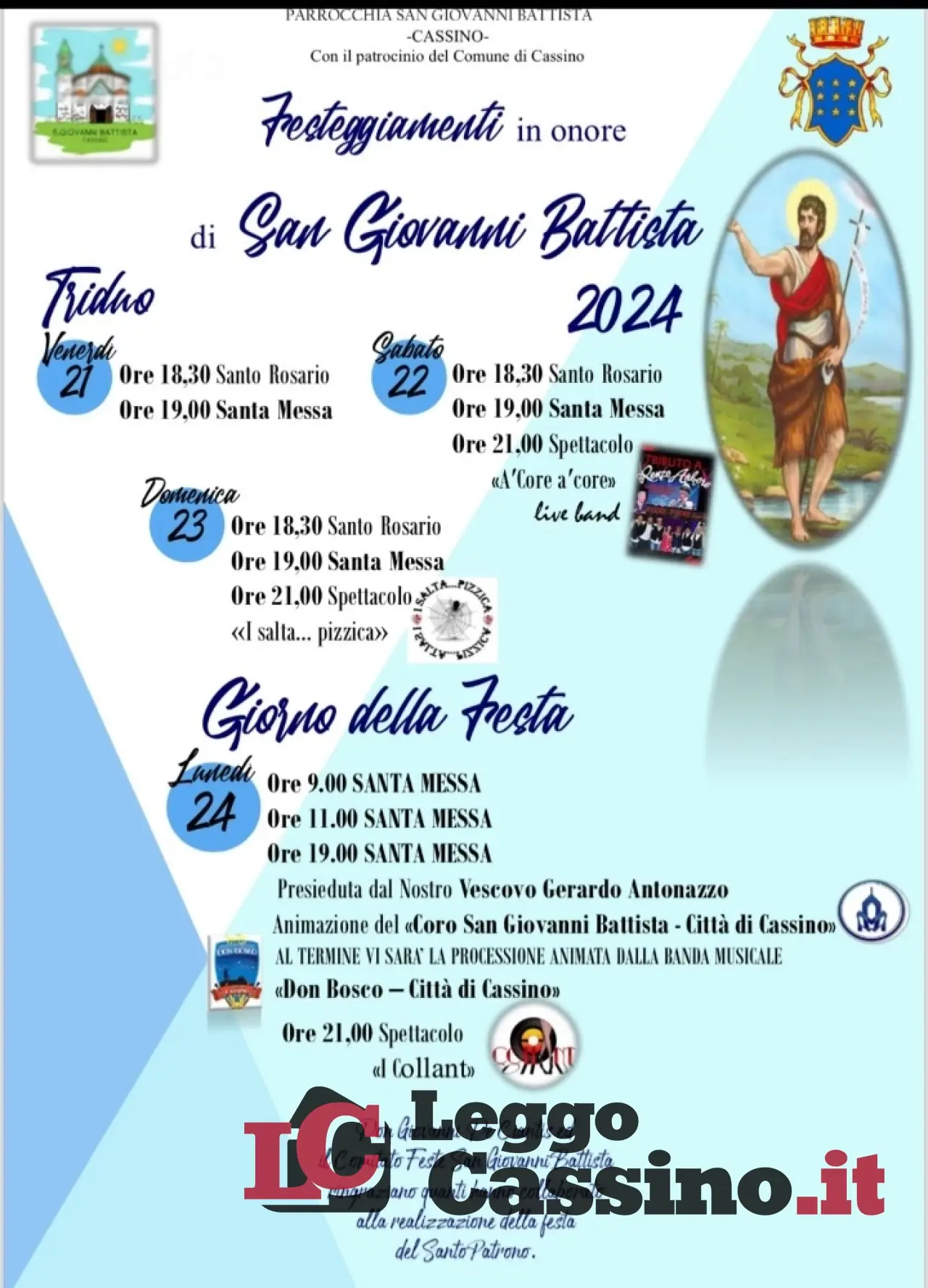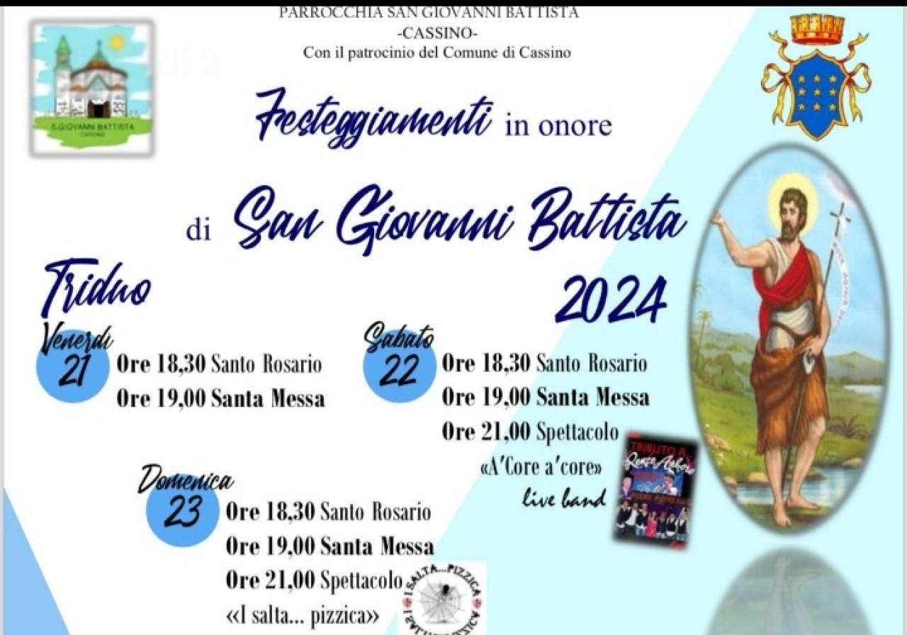 Iniziano da stasera 21 giugno i festeggiamenti in onore di San Giovanni Battista con il tradizionale Triduo religioso che ci prepara alla Solennità del 24 giugno, giorno della festa, che vede la solenne Celebrazione Eucaristica presieduta dal nostro Vescovo Gerardo Antonazzo alle ore 19.00 e a seguire la tradizionale processione per le vie della Parrocchia. Anche se sono diversi gli eventi in quel giorno, il nostro vuole essere il segno della Grazia che incontra l’uomo nel solco della tradizione del nostro territorio.