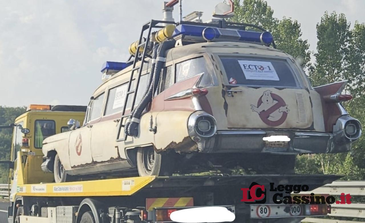 Una pattuglia della Sottosezione Polizia Stradale di Frosinone, in servizio di vigilanza autostradale sull’A1, prima dell’uscita per Cassino ha proceduto al controllo di un carro attrezzi trasportante un veicolo CADILLAC Modello Miller Meteor identico a quello della nota serie dei film americani “Ghostbusters – acchiappa fantasmi”.