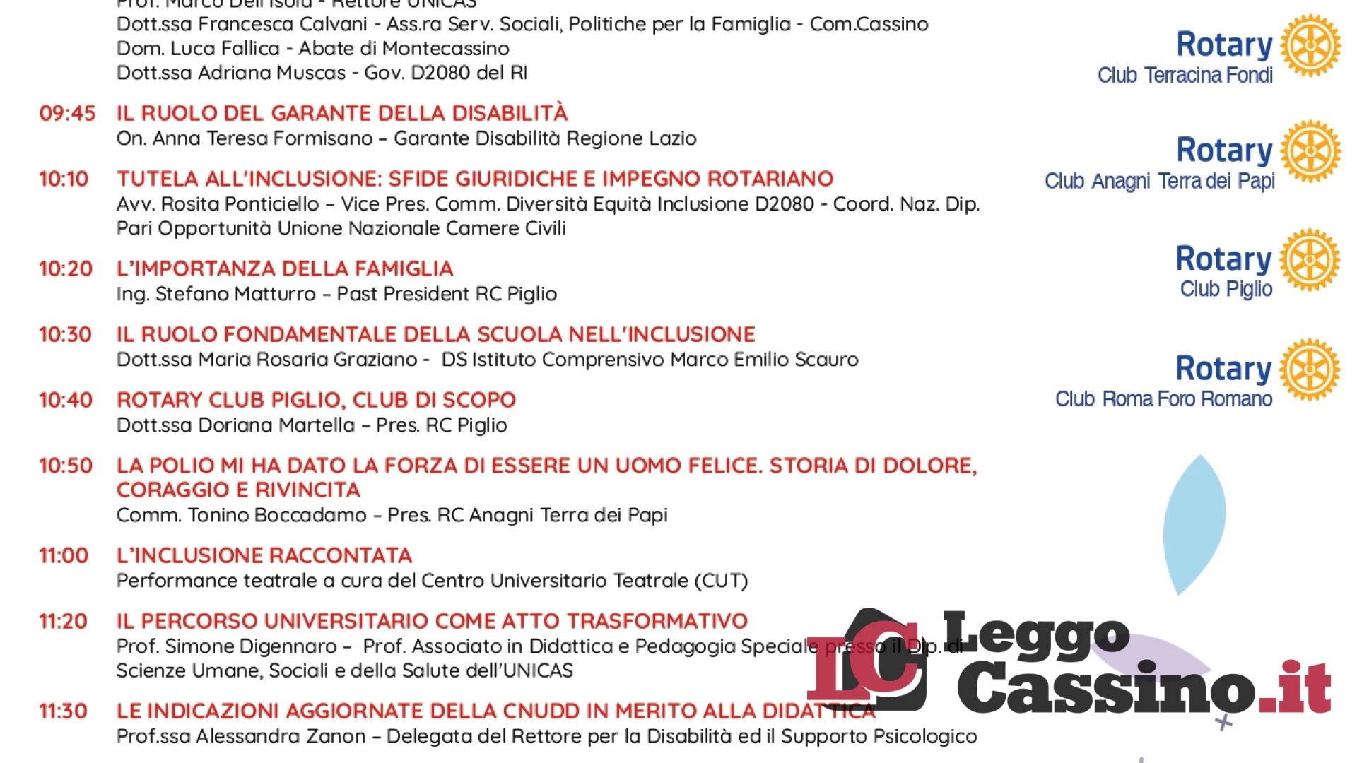 Determinante il coinvolgimento dell’Università, che ha inserito l’evento all’interno delle attività formative rivolte ai numerosi studenti presenti in città, ampliando ulteriormente la portata e l’impatto dell’iniziativa. “Sin dall’inizio del mio anno rotariano – dichiara il Presidente del Rotary Club Cassino, Emilio Mignanelli – abbiamo scelto di mettere al centro della nostra programmazione progetti dedicati alle persone con disabilità.