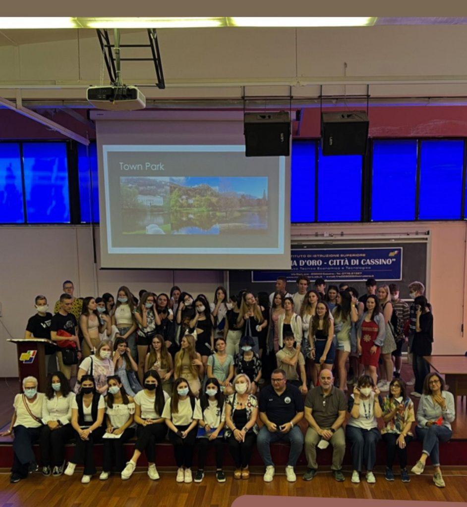 Dopo i saluti e il benvenuto del dirigente scolastico Marcello Bianchi alla comitiva di Tychy, il preside ha spiegato: "Nonostante Cassino sia una piccola città di circa 35000 abitanti, è ricca di importanti siti archeologici e storici, tra cui la celebre Abbazia di Montecassino; è inoltre stata teatro di una delle battaglie chiave della seconda guerra mondiale". Ha poi introdotto le studentesse e gli studenti che avrebbero fatto loro da guida in un breve tour della città.