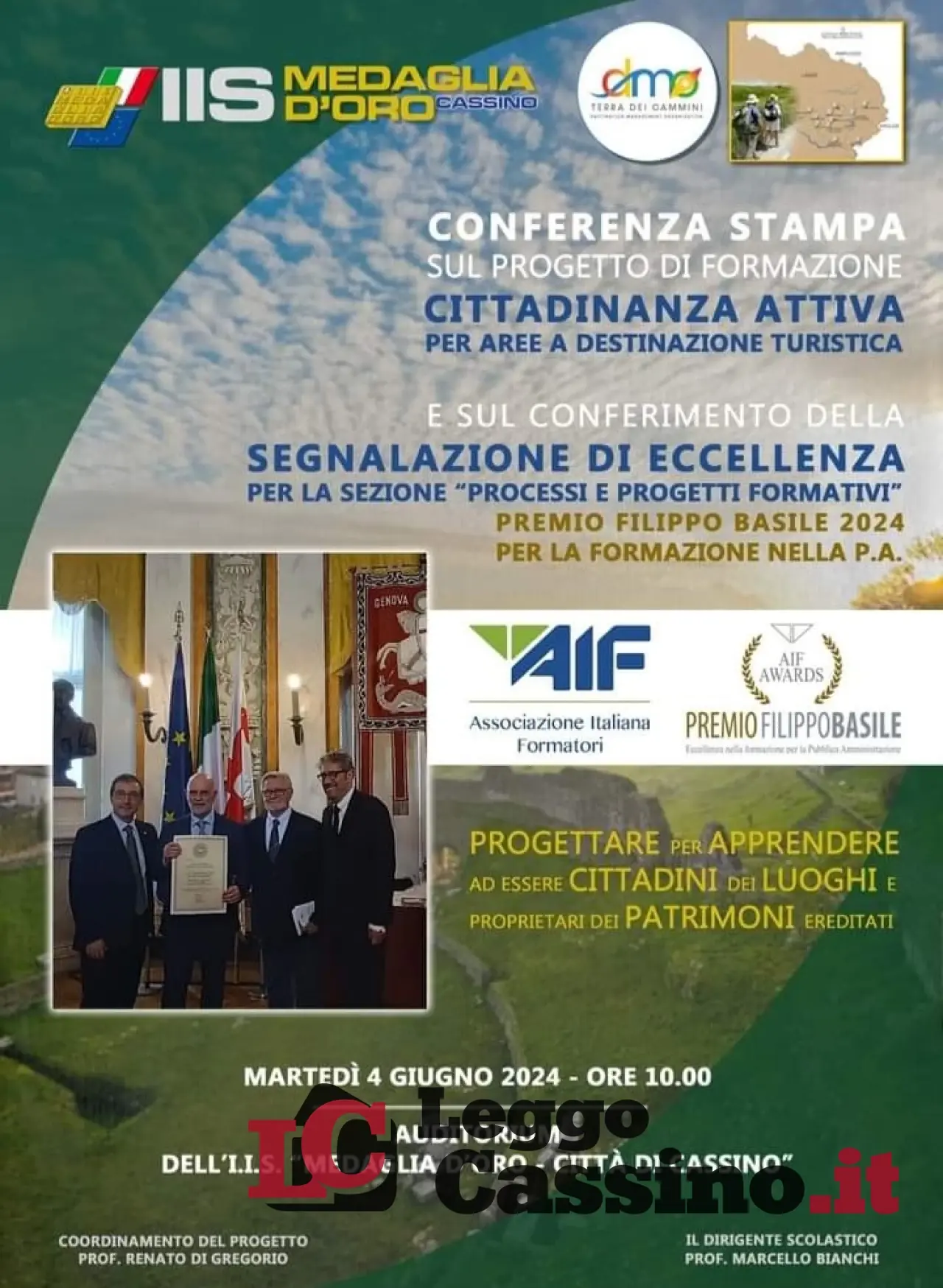 L’evento si svolgerà presso l’Auditorium della sede centrale dell’I.I.S. Medaglia d’Oro “Città di Cassino” diretto dal dirigente scolastico Marcello Bianchi, alle ore 10. Il progetto sarà coordinato dal professore Renato Di Gregorio, Destination Manager della DMO Terra dei Cammini di cui l’Istituto è socio. Nello stesso ambito verrà conferito all'IIS Medaglia d'Oro la Segnalazione di Eccellenza per il premio Filippo Basile 2024 per la formazione nella Pubblica Amministrazione.