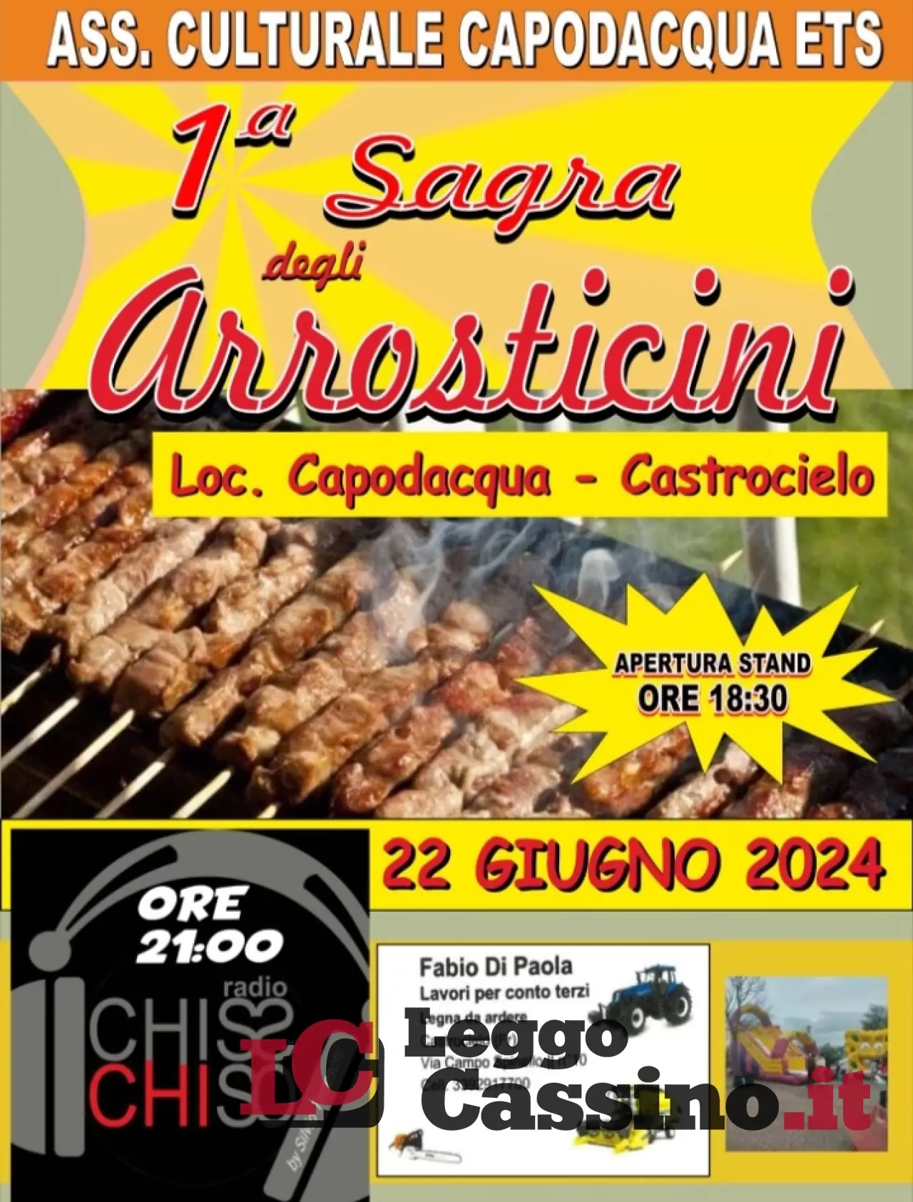 Si terrà sabato 22 giugno la 1^ Sagra degli Arrosticini.