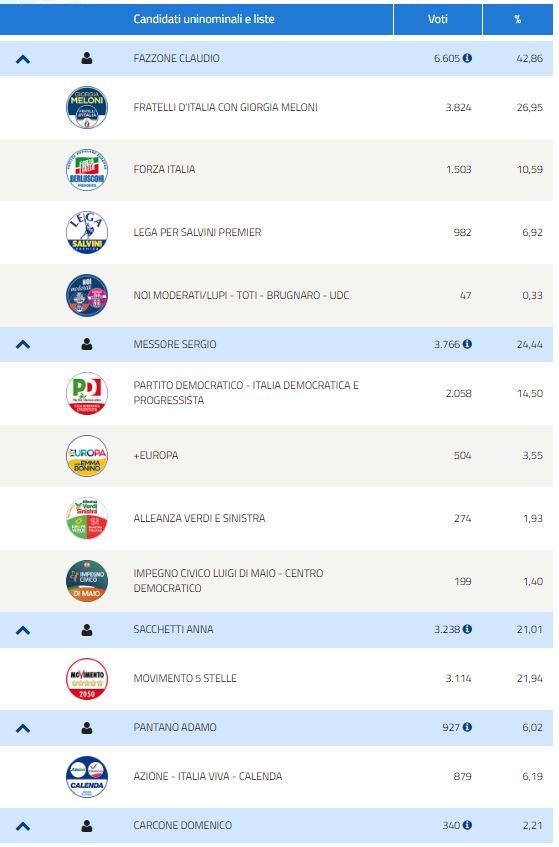 I NUMERI - Il Centrodestra conquista i collegi uninominali della Camera e del Senato con Nicola Ottaviani e Claudio Fazzone. Forza Italia stacca la Lega. Il M5S sette punti davanti al Pd: nulla da fare per Messore e Visini