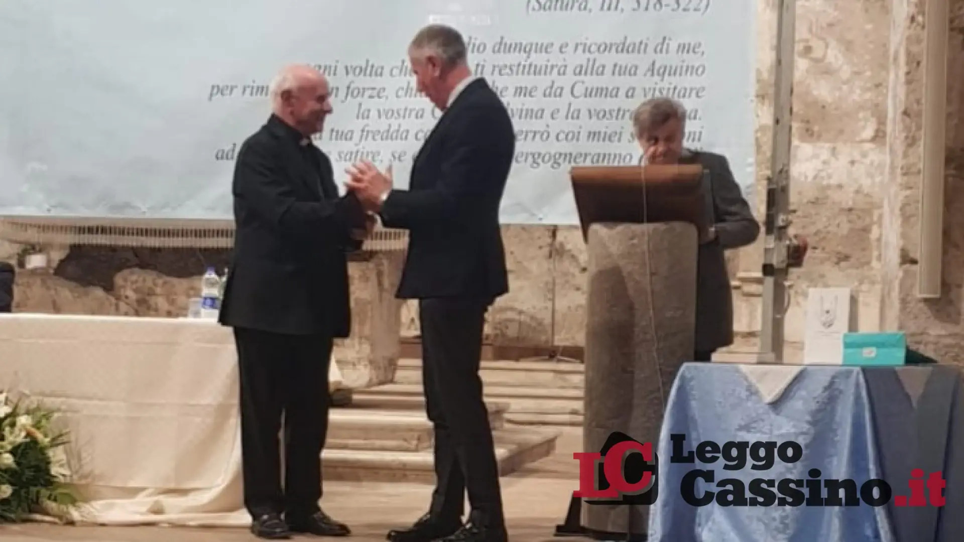 Si è svolta nel consueto, incantevole scenario della Chiesa medievale di Aquino la cerimonia di consegna del XXXI Premio Giovenale, prestigioso riconoscimento di rilevanza nazionale organizzato dalla Proloco di Aquino, assegnato quest’anno a Monsignor Vincenzo Paglia, che succede nell’albo d’oro a figure come Luciano De Crescenzo, Giulio Andreotti, Walter Veltroni, Nicola Gratteri ed anche il giornalista Sigfrido Ranucci che proprio in questi giorni, come noto, è stato fatto segno di un grave gesto intimidatorio.