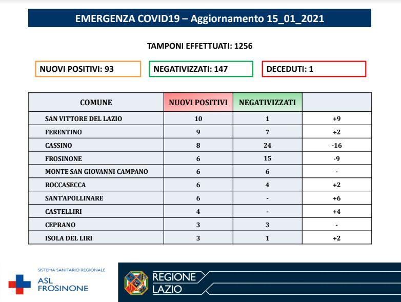 Un solo decesso. Si tratta di un 61enne di Cassino. La città martire oggi non è in testa alla classifica per numero di positivi, ma è sempre il Cassinate a comandare: oggi tocca al comune di San Vittore del Lazio con dieci casi.