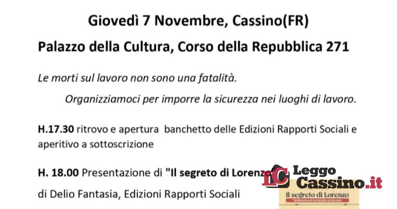 “Il segreto di Lorenzo” questo il titolo del libro di Delio Fantasia, Edizioni Rapporti Sociali che verrà presentato giovedì 7 novembre alle ore 18 presso il Palazzo della Cultura.