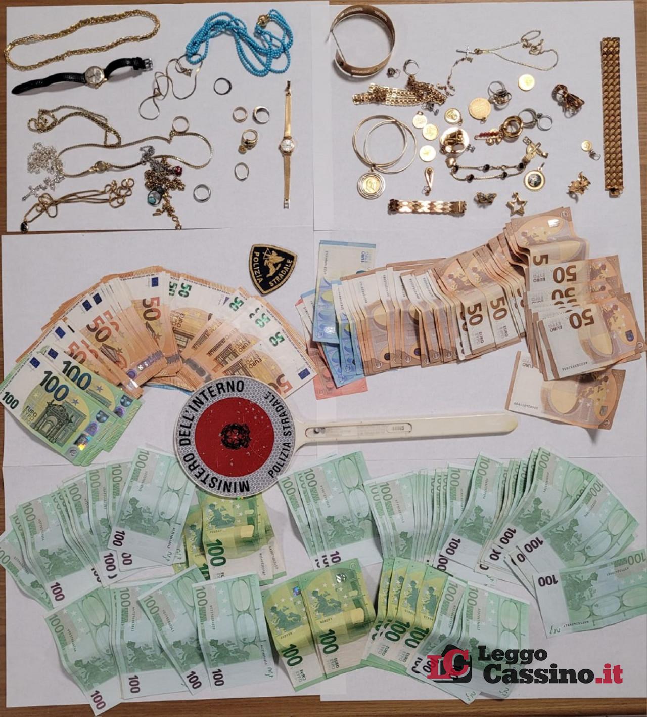 I Poliziotti della Stradale a questo punto decidevano di effettuare una perquisizione personale e del veicolo su cui viaggiava; l’intuito dei “centauri della stradale” si rilevava corretto in quanto all’interno del mezzo venivano rinvenuti numerosissimi monili in oro, ben nascosti e negli slip veniva rinvenuto un calzino con all’interno diversi gioielli e denaro contante pari a 15.350 euro.