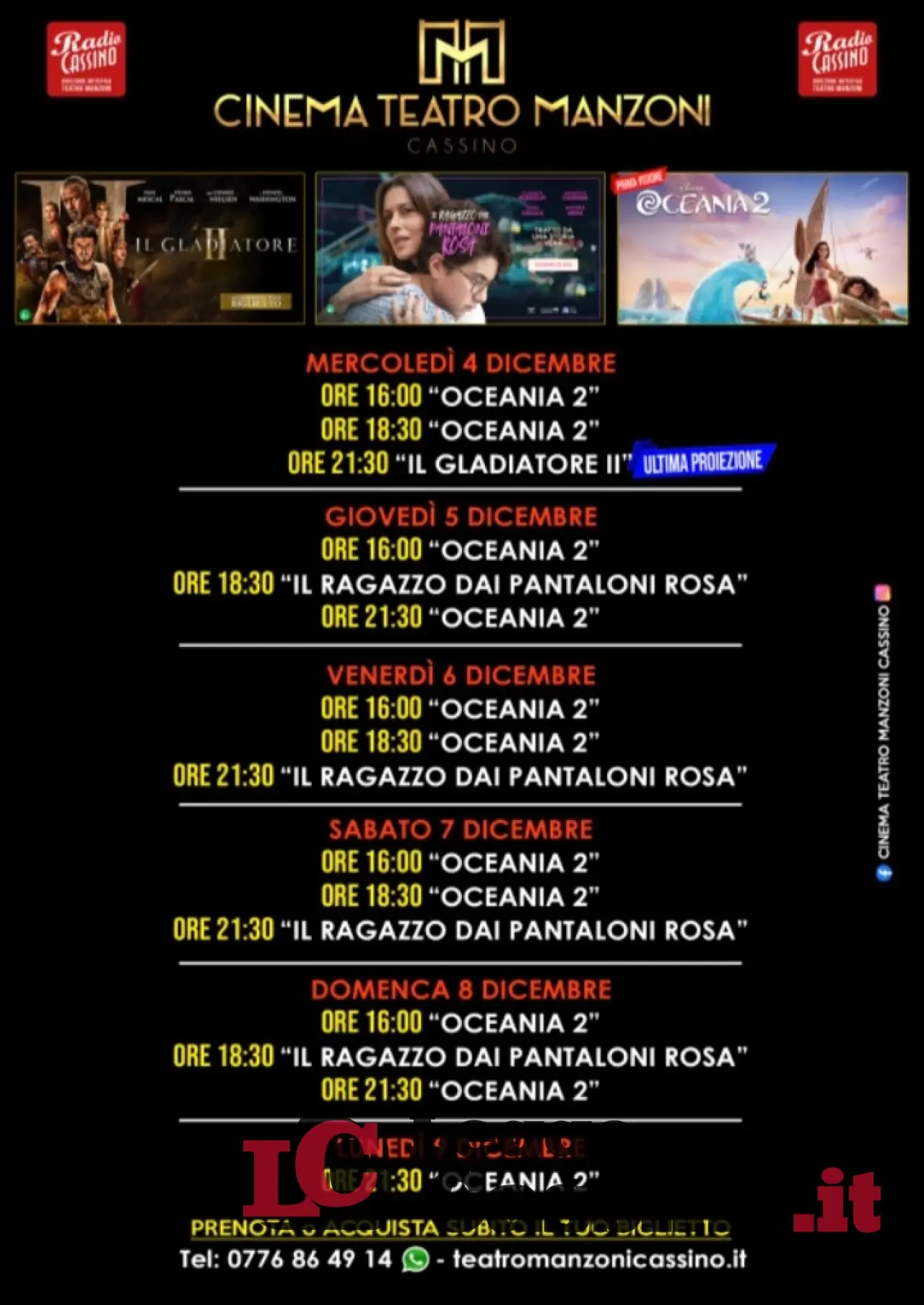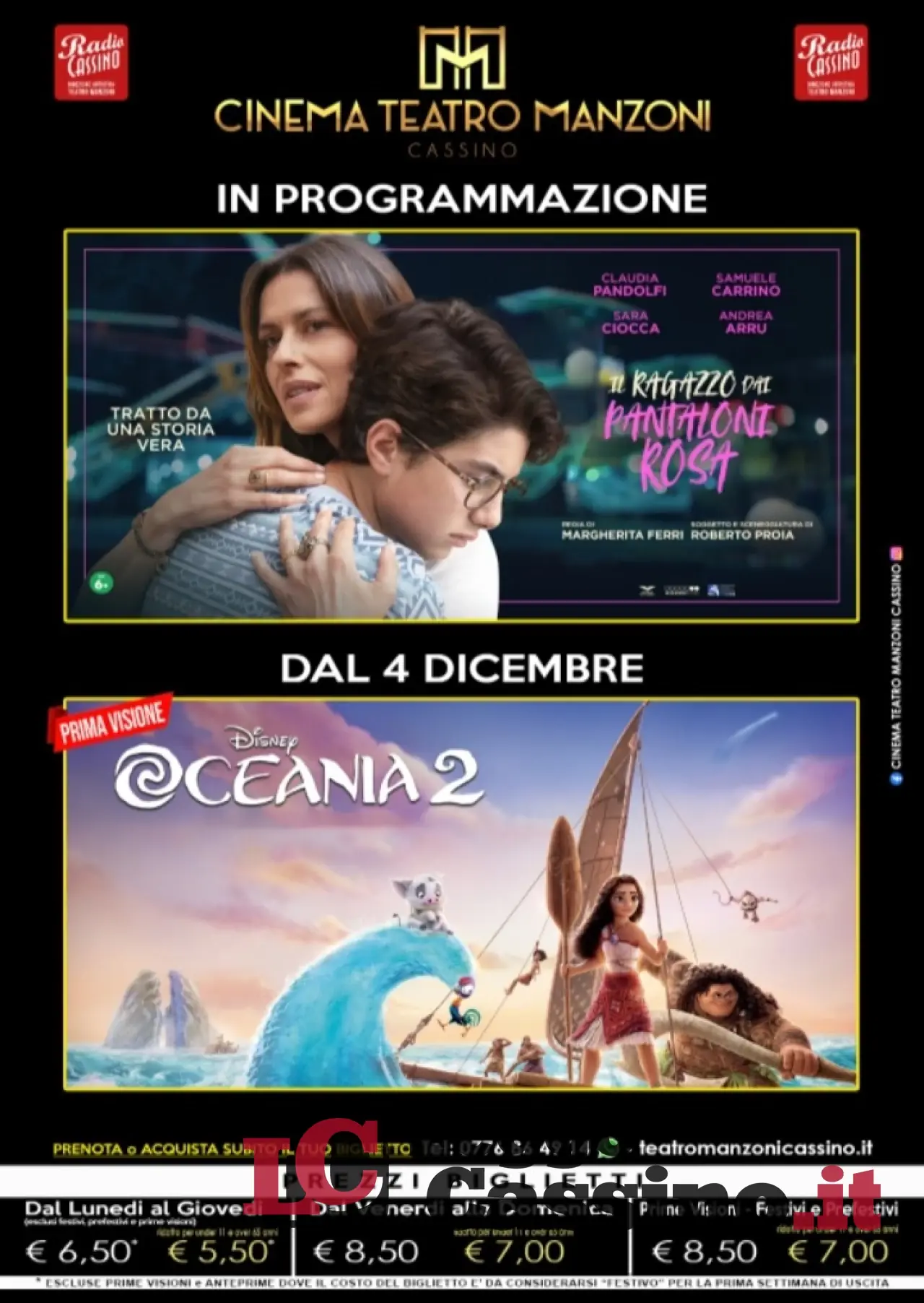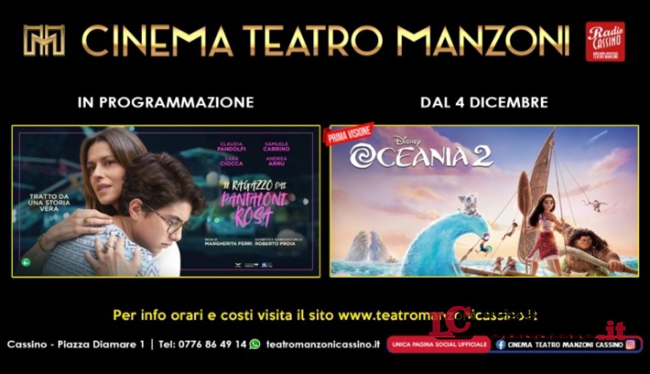 Cinema Teatro Manzoni Cassino, bambini (e famiglie) pronti da mercoledì 4 dicembre alle ore 16.00 per un avventuroso viaggio in acque perigliose. Quelle descritte in "Oceania 2", che vede riuniti dopo un triennio Vaiana e Maui insieme ad un improbabile gruppo di navigatori. A far leva su Vaiana, un antico richiamo che la porterà verso mari lontani per vivere un’esperienza mai provata prima.