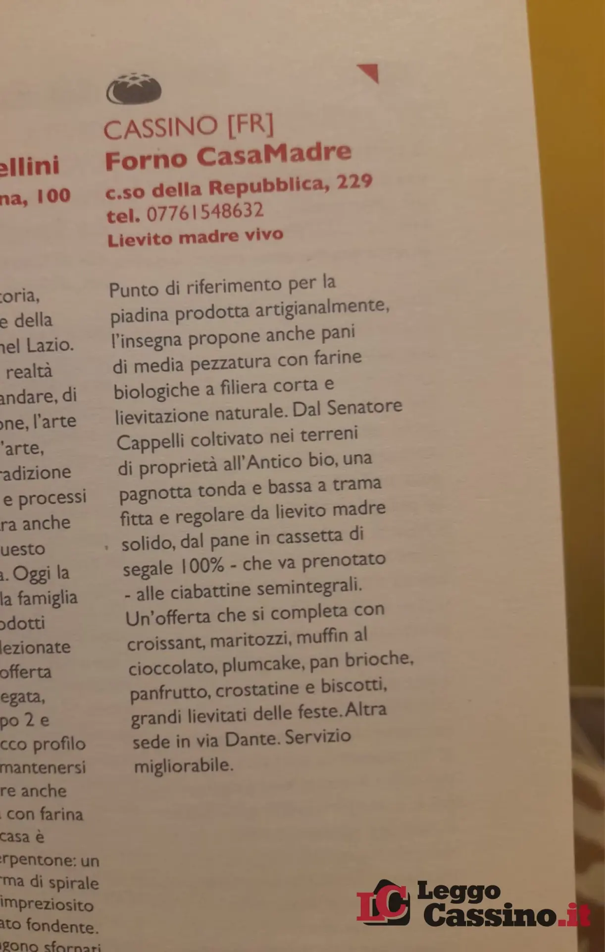 Aperto nel dicembre 2020 in Corso della Repubblica 229, il forno si è rapidamente distinto per una proposta basata su lievito madre vivo, farine biologiche a filiera corta e processi di lievitazione naturale. Nella recensione della guida, CasaMadre è definito: “Punto di riferimento per la piadina prodotta artigianalmente […] con pani di media pezzatura, dal Senatore Cappelli coltivato nei terreni di proprietà, all'Antico bio, al pane in cassetta di segale 100%, fino alle ciabattine semintegrali.”